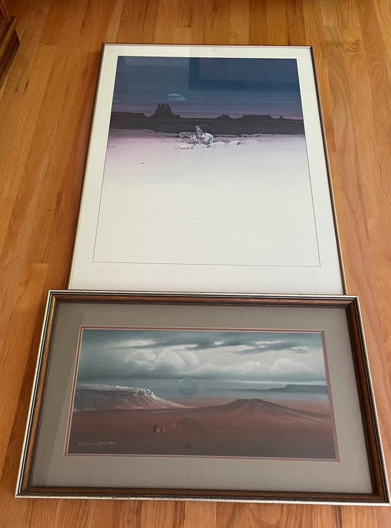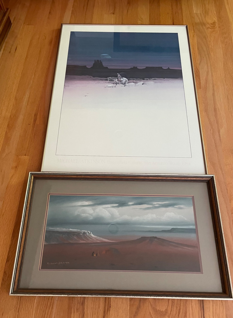 Sold AS IS WHERE IS with no guarantees on condition or completeness. Robert Draper Print, Size 19 1/2' x 18" Unknown Artist Southwest Style Print, Size 32" x 24'="Robert Draper Southwest Style Print & Print by Unknown Artist