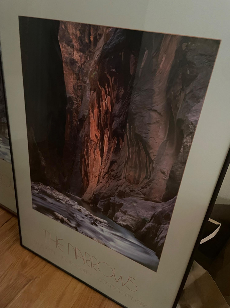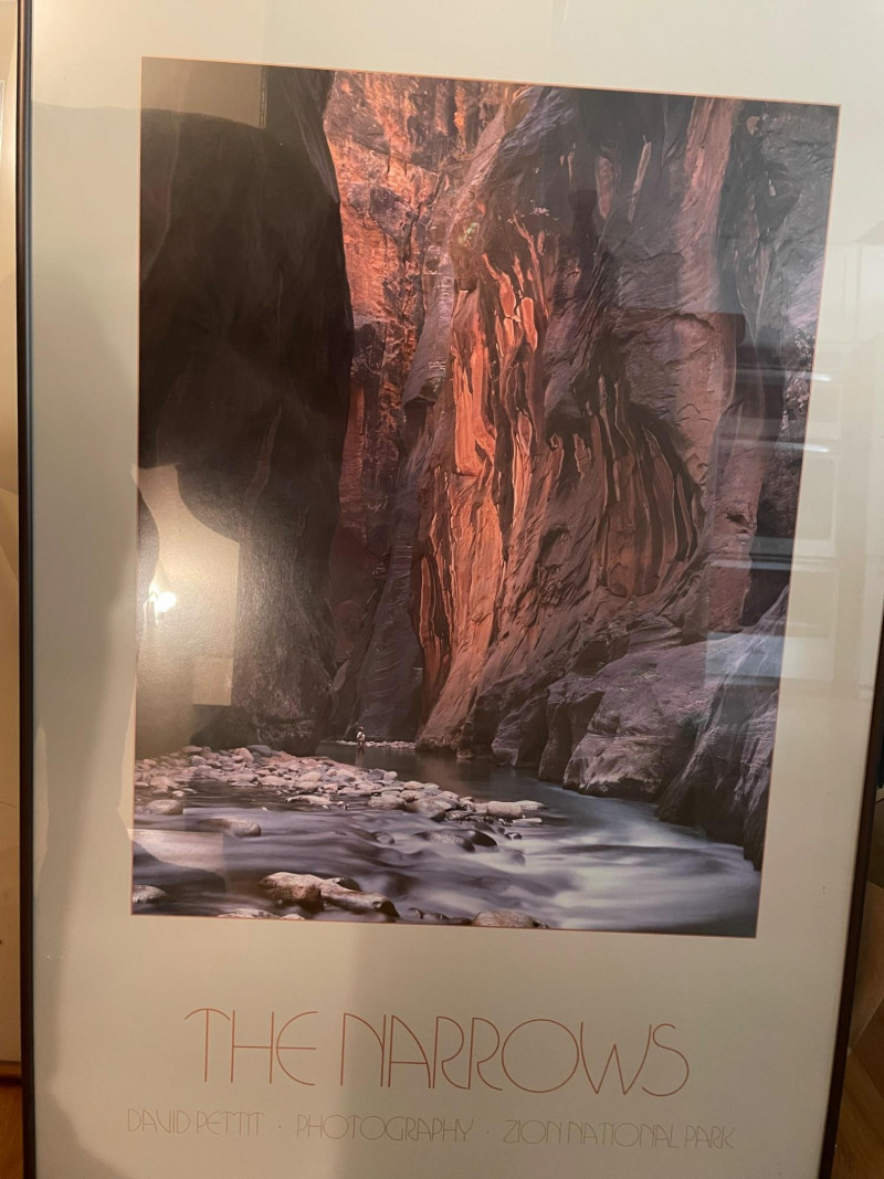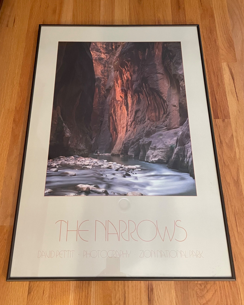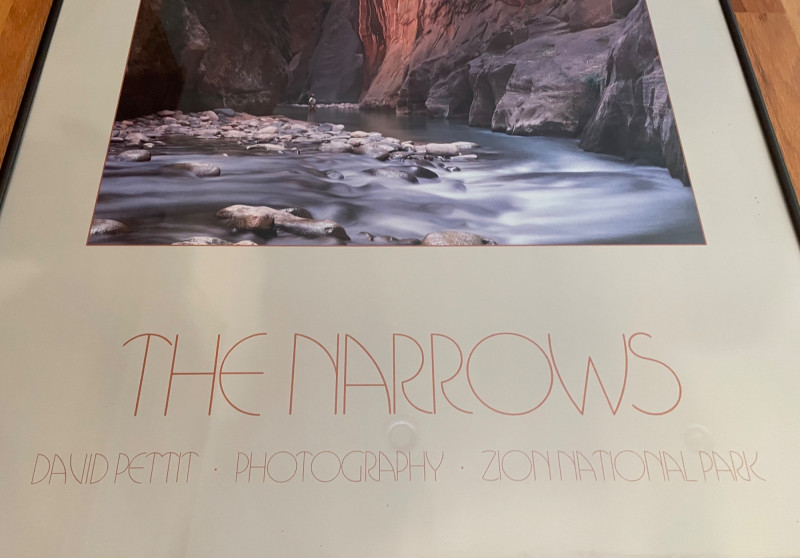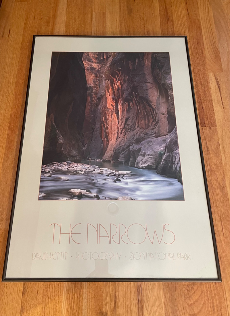 A striking landscape print by Davit Pettit titled “The Narrows.” This large‑format piece captures the dramatic vertical canyon walls and depth characteristic of Pettit’s work, making it an excellent focal point for a living room, office, or gallery wall. Title: “The Narrows” Artist: Davit Pettit Size: 24" x 35" H Framed print Category: Art Normal wear consistent with previously owned artwork.