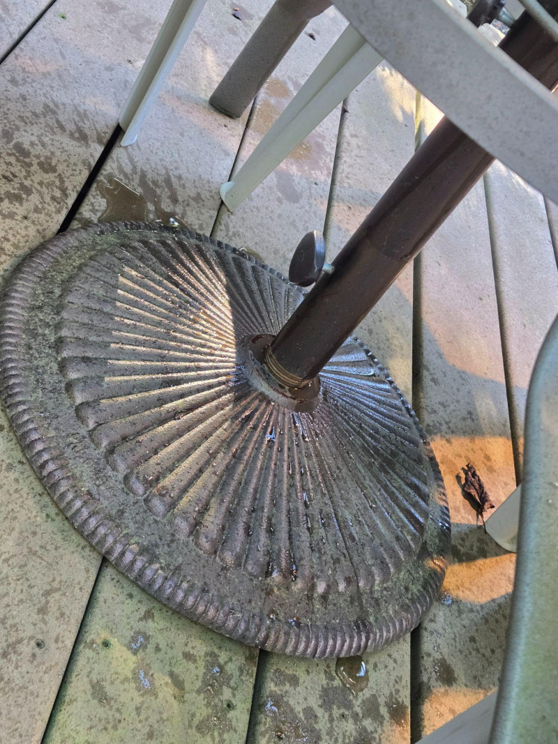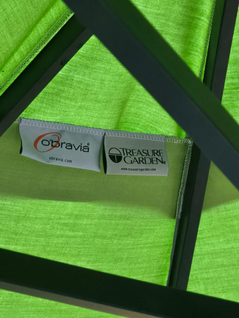 A complete outdoor seating set paired with a Treasure Garden umbrella featuring Great O’bravia fabric, known for its durability, fade resistance, and long‑lasting outdoor performance. This set provides a comfortable and stylish foundation for a patio, deck, or garden seating area. Patio seating set (chairs/table details can be added once confirmed) Includes Treasure Garden umbrella Umbrella features Great O’bravia fabric, designed for UV resistance and outdoor longevity Neutral green umbrella color suitable for most outdoor décor styles Table (30") & Chairs need a good bath. The Umbrella is in great condition Normal wear consistent with previously used outdoor furniture.