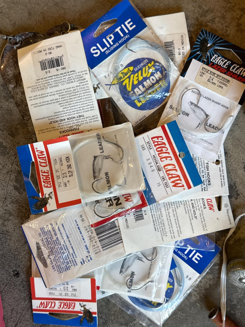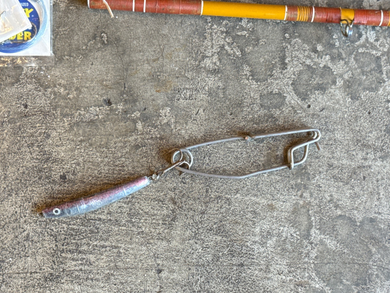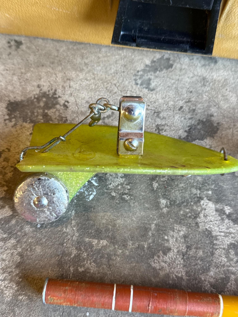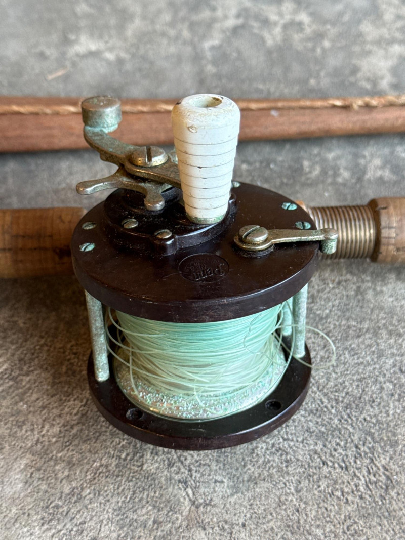 Vintage Metal, Olympic Fishing Rod & Fishing Lures w/ Tackle Box *please note photos. All vintage condition. The Tacklebox has some fishing gear inside, and the edge of the box is cracked.