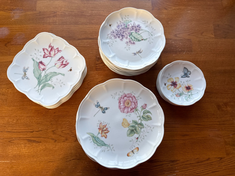 Lenox Butterfly Dish Set- Sizes and total of pieces are as listed below- Gently used condition.