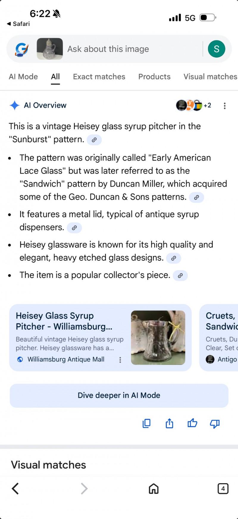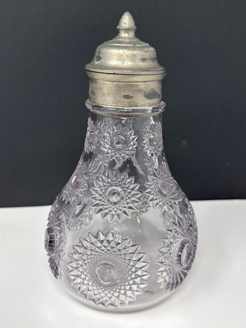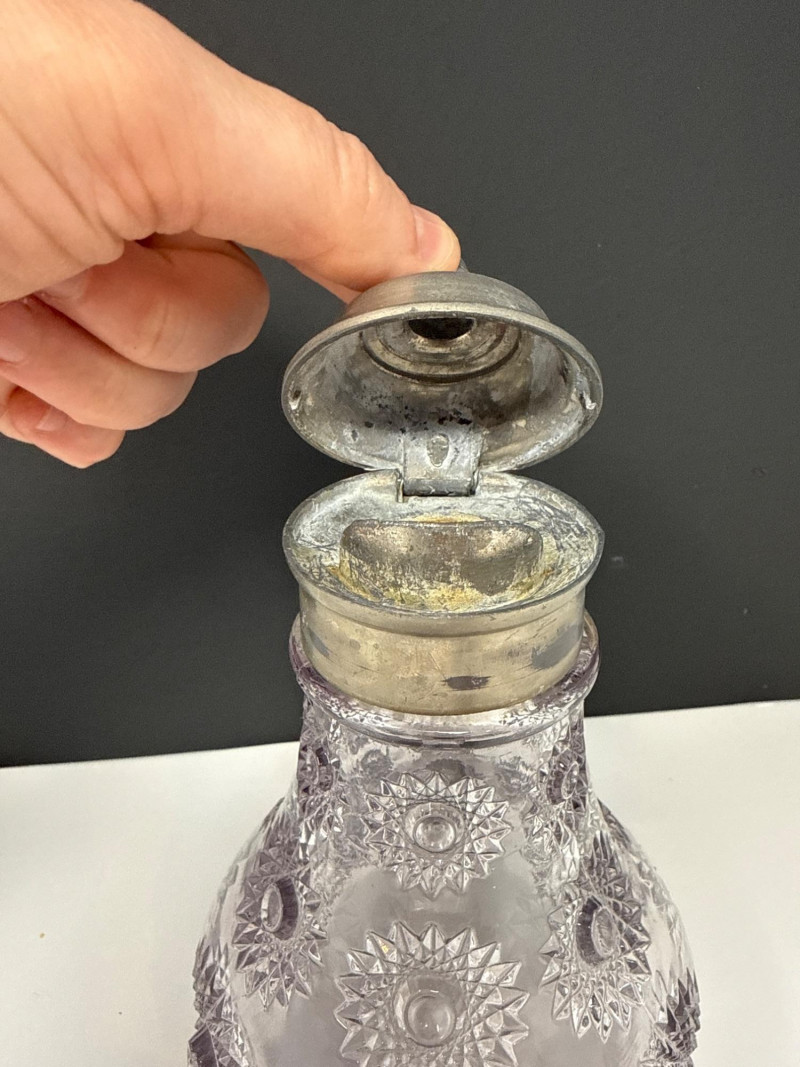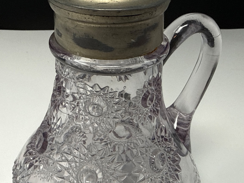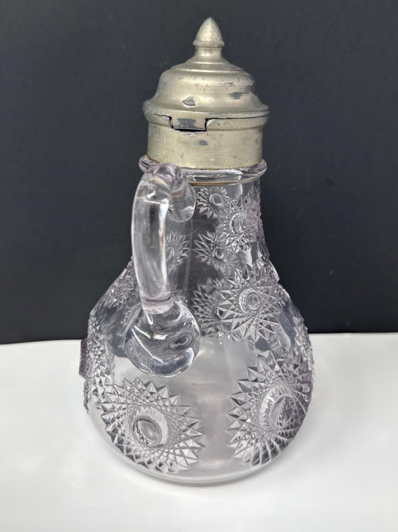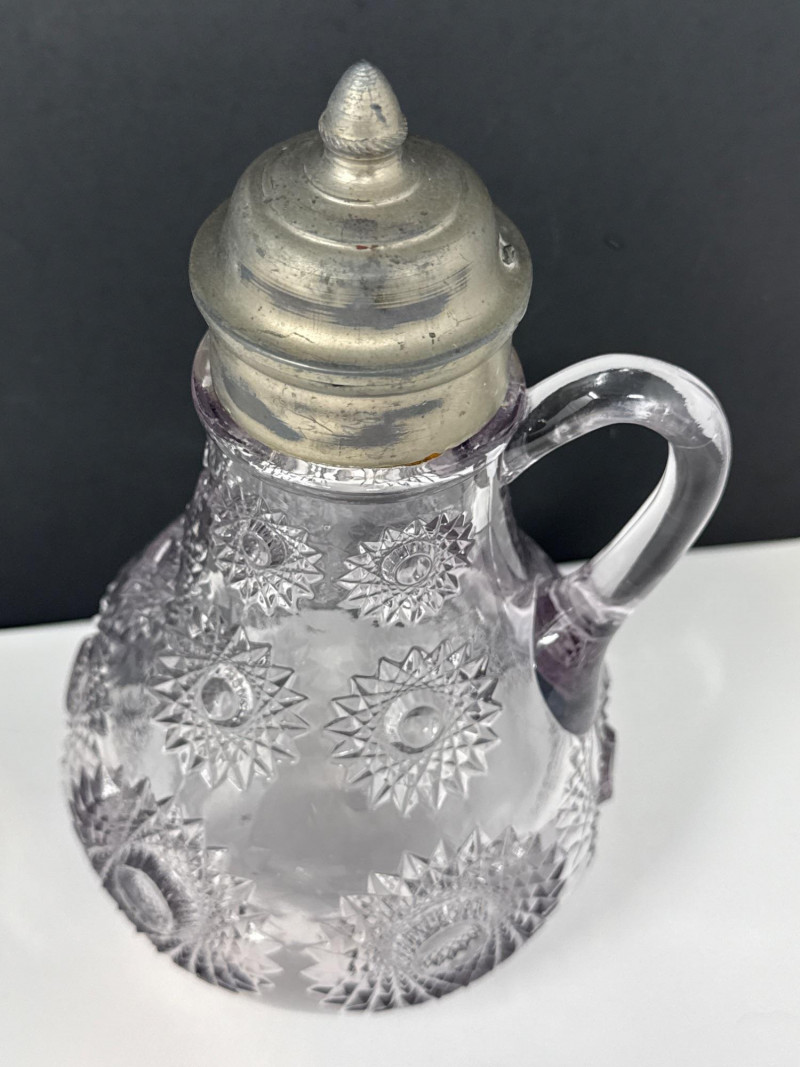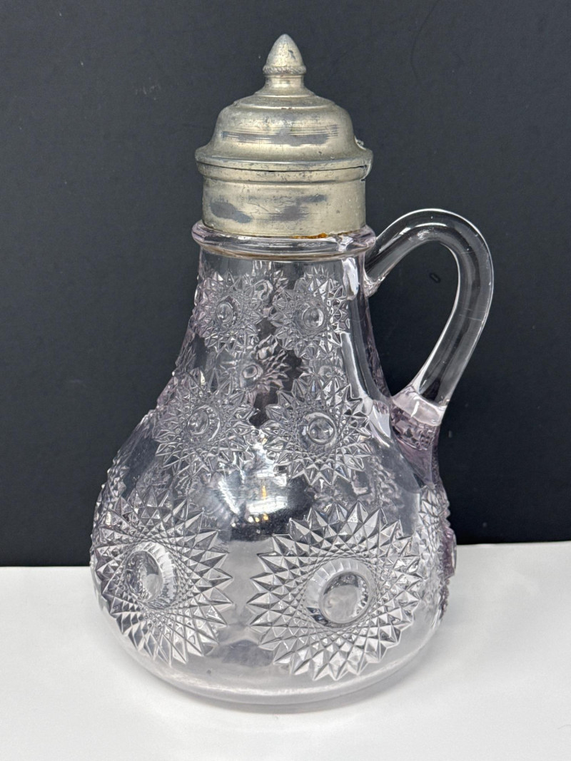 Antique Heisey Glass Sunburst Syrup or Molasses Jug. Turning beautiful purple hue.