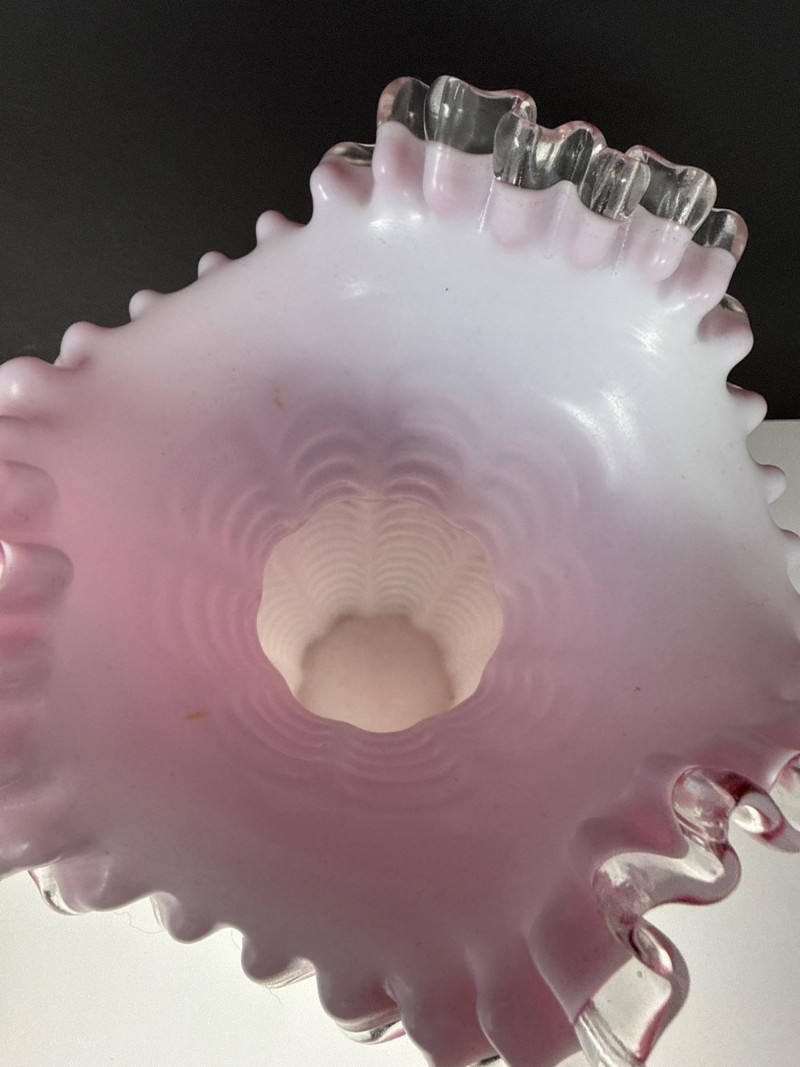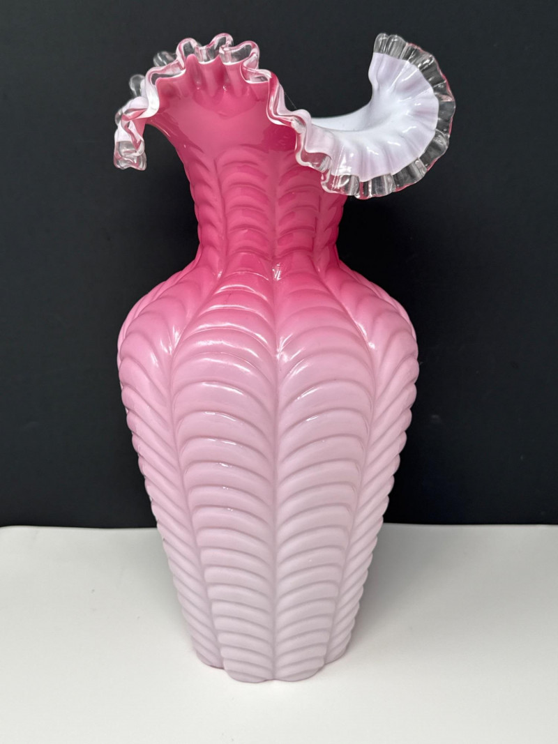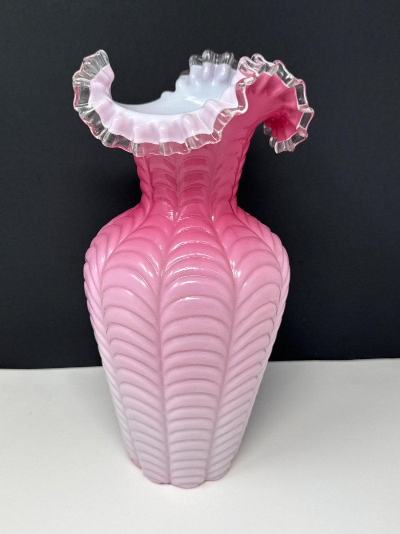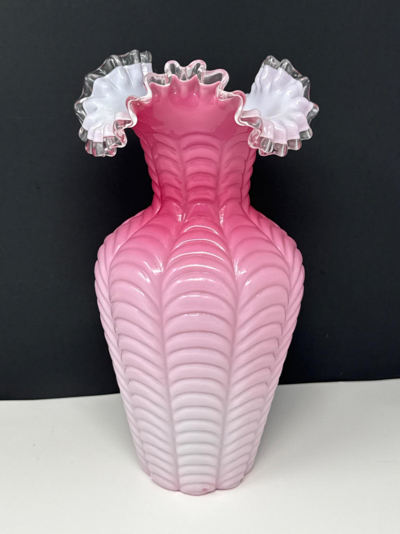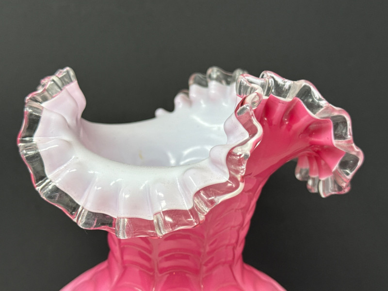 Victorian Ruffled Pink Cased Glass Draped Vase