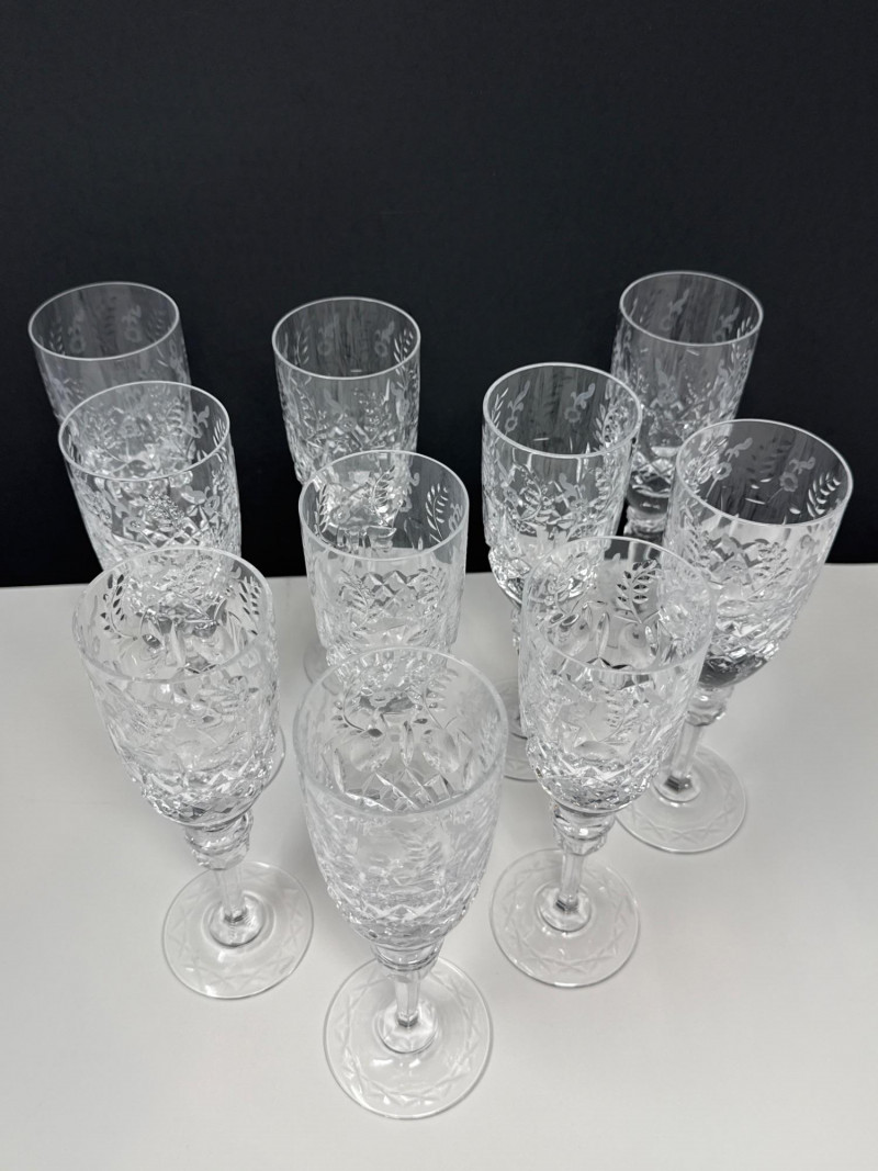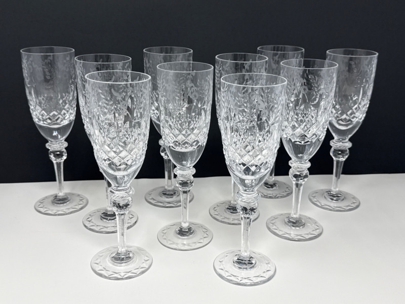 Rogaska “Gallia” Crystal Champagne Flutes- set 10 There is 2 more sets of glasses from this same brand/pattern. Lots #14 & #20