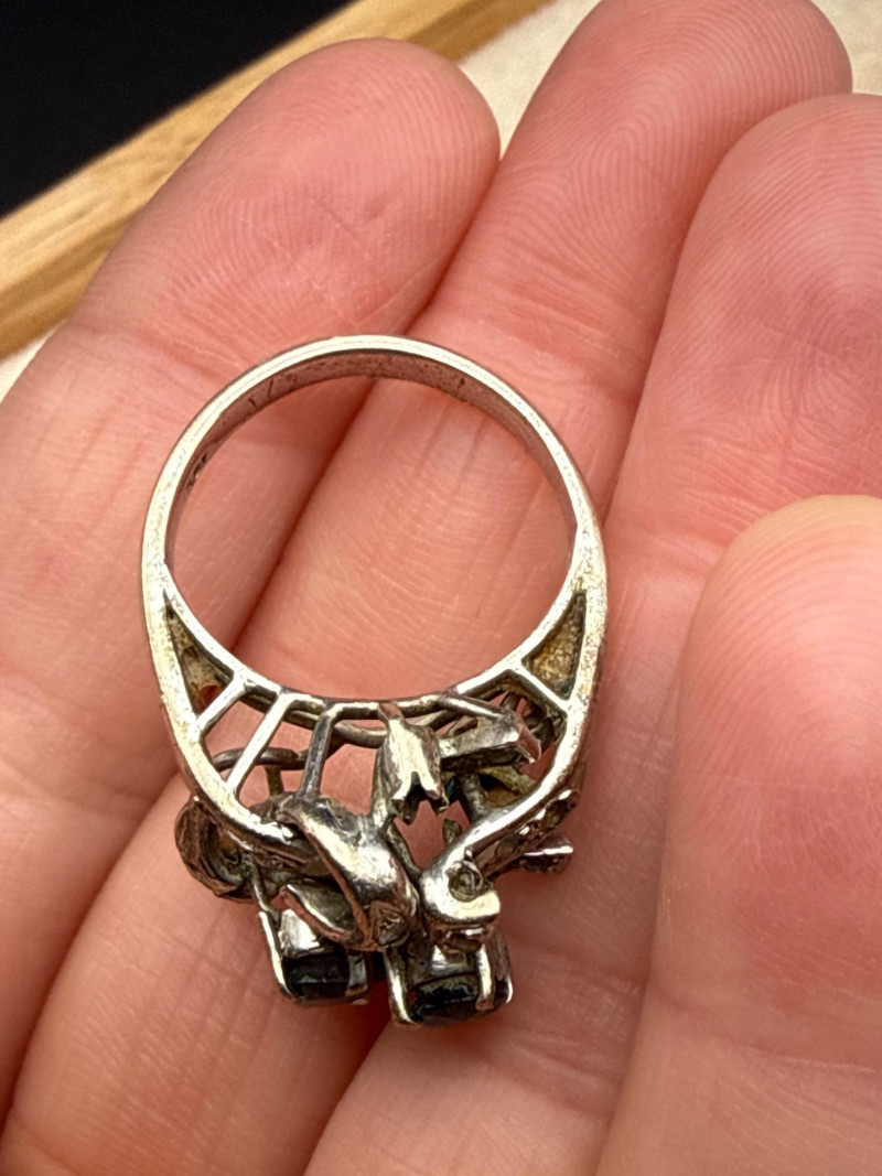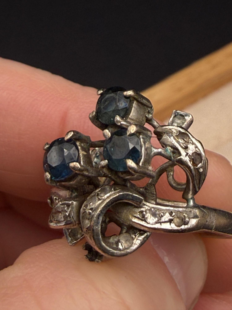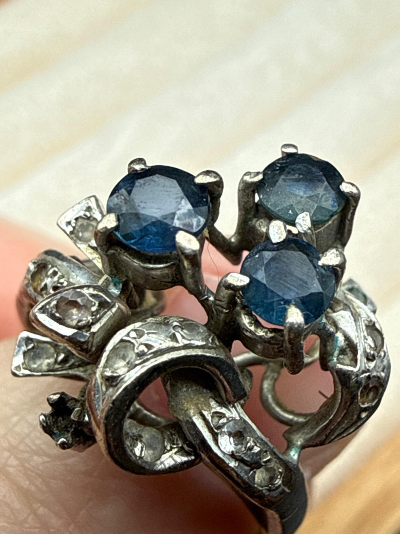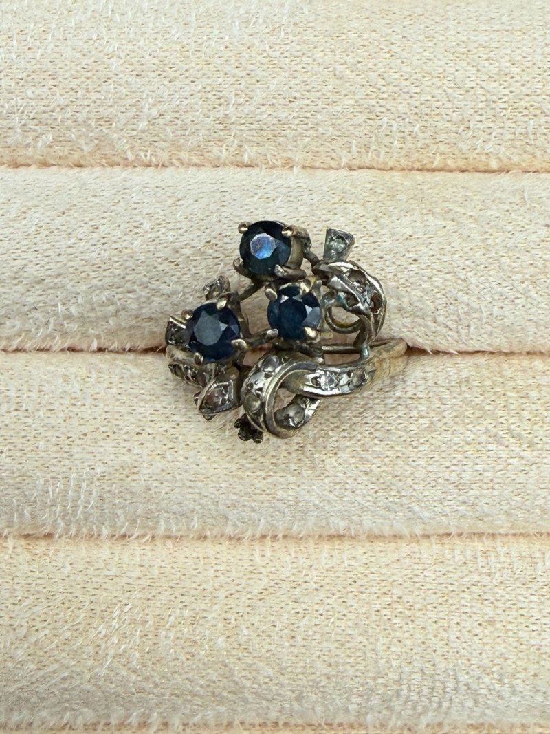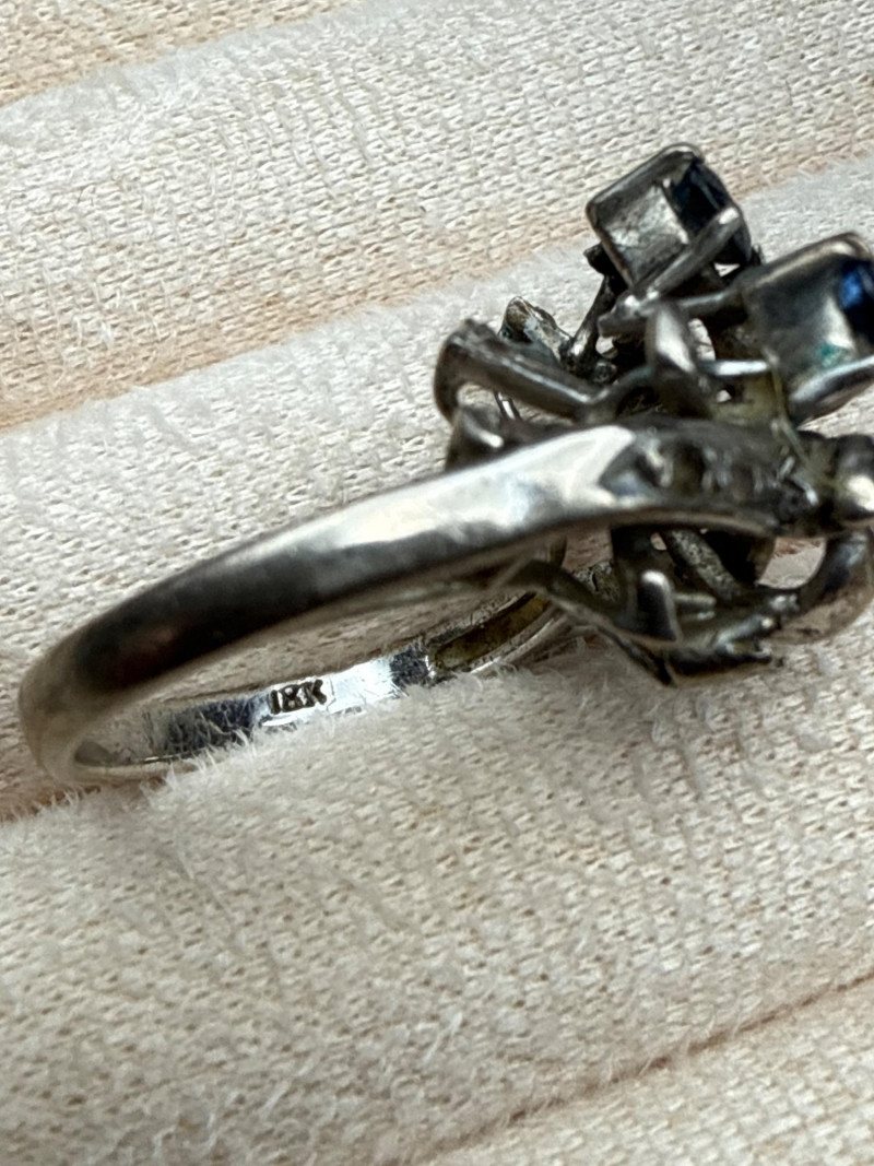 Vintage 18k Sapphire Diamond Ring Size 7- 6g *untested *there does appear to be a missing stone, see second to last photo.