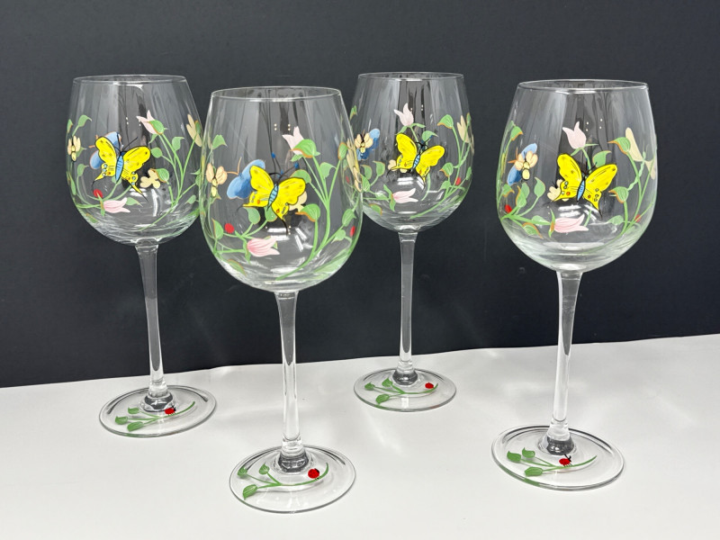 Lot # 12 - Lenox Butterfly Meadows Hand-painted Crystal Goblets- Set 4
