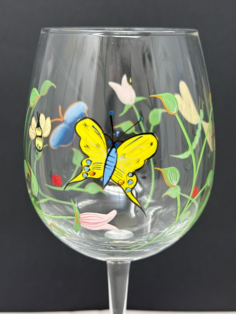 Lenox Butterfly Meadows Hand-painted Crystal Goblets- Set 4