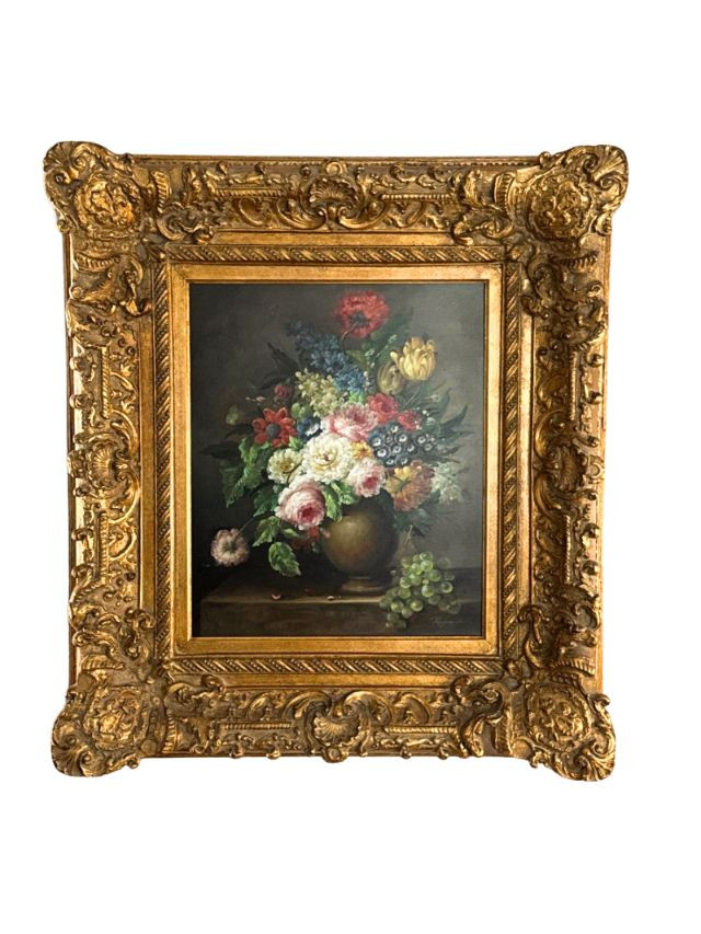Lot # 19 - Large Floral Oil Painting Dutch Style in Gilt Frame *signed Raymond