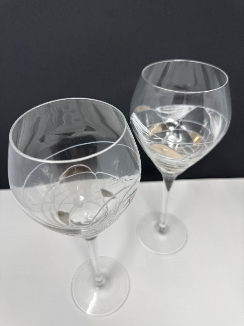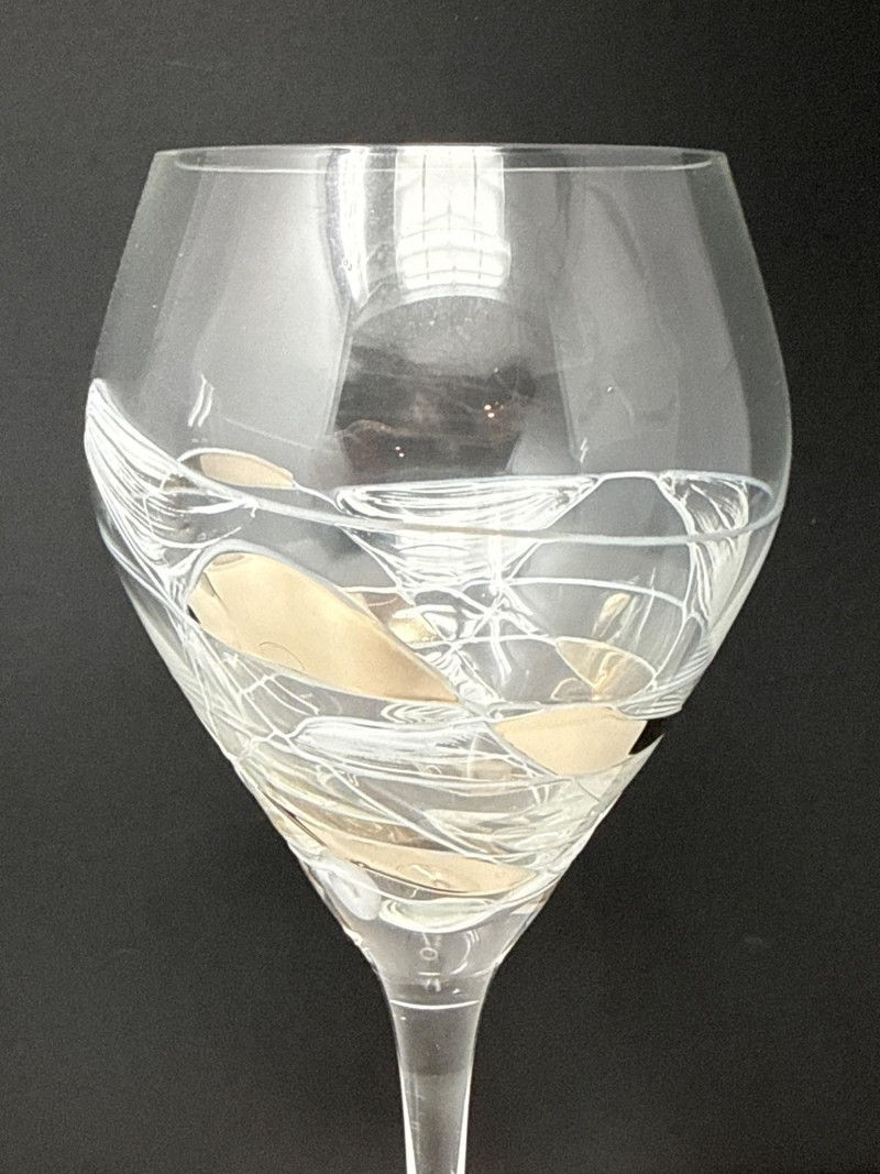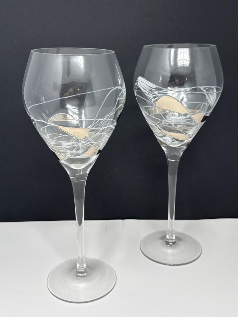 Vintage Milano Romania Mosaic Wine Goblets - Pair White and Gold Accents