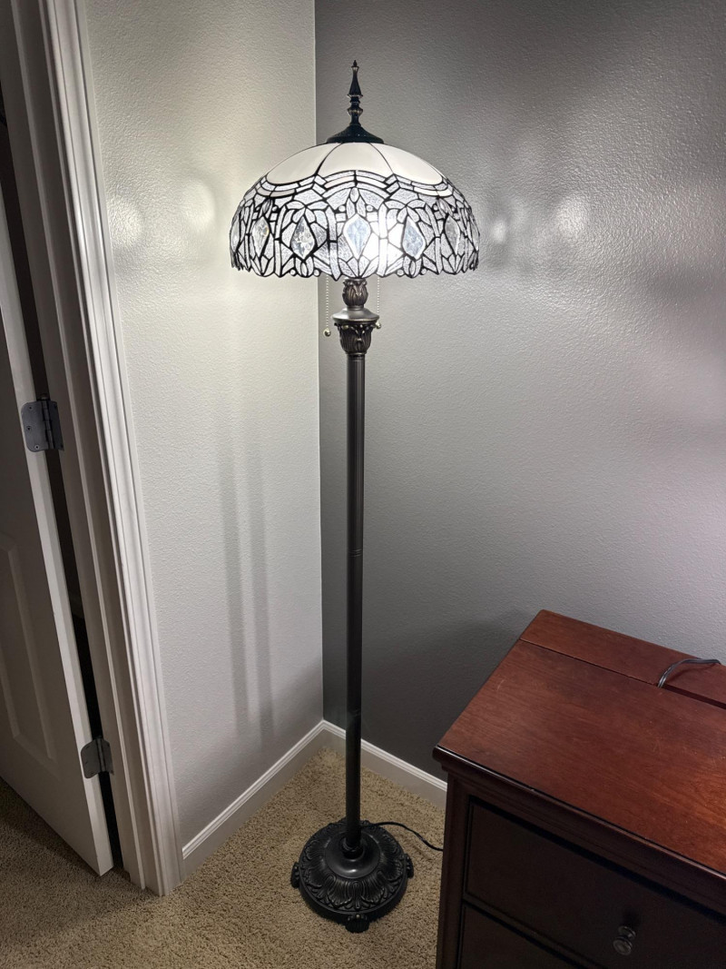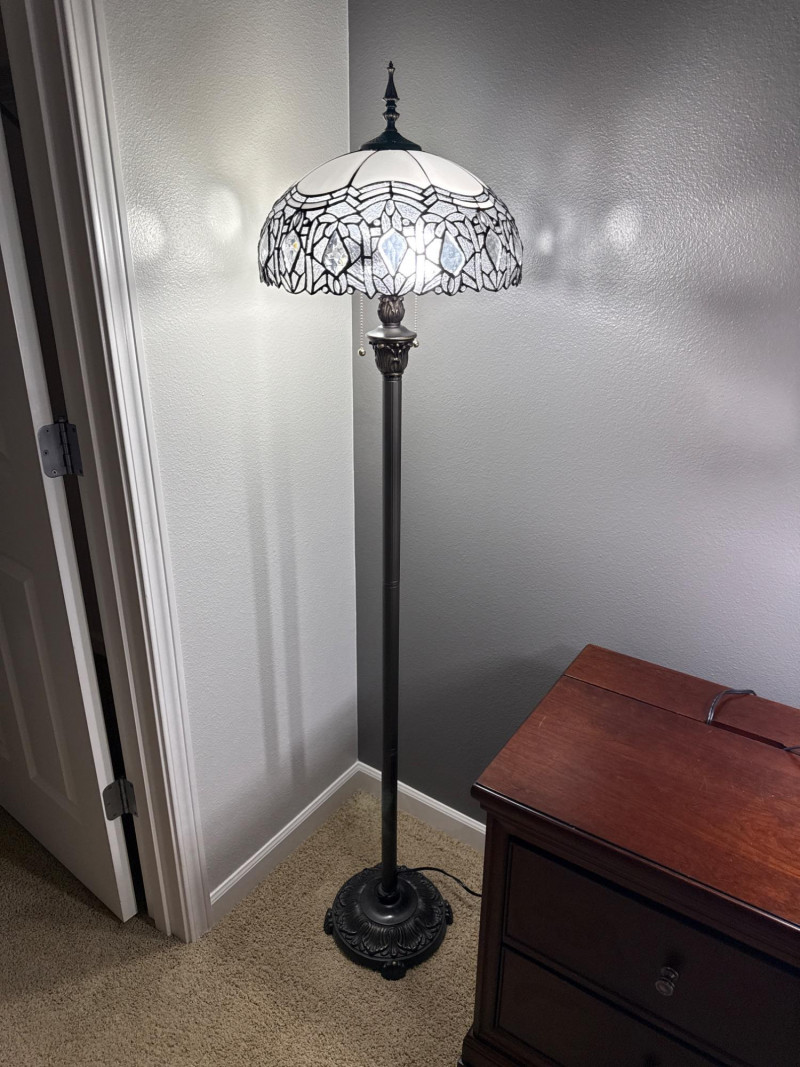 Lot # 37 - Tiffany Style White Stained Glass Floor Lamp