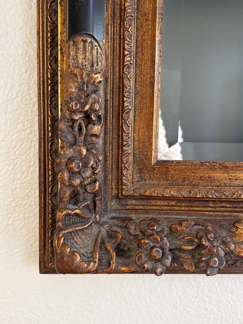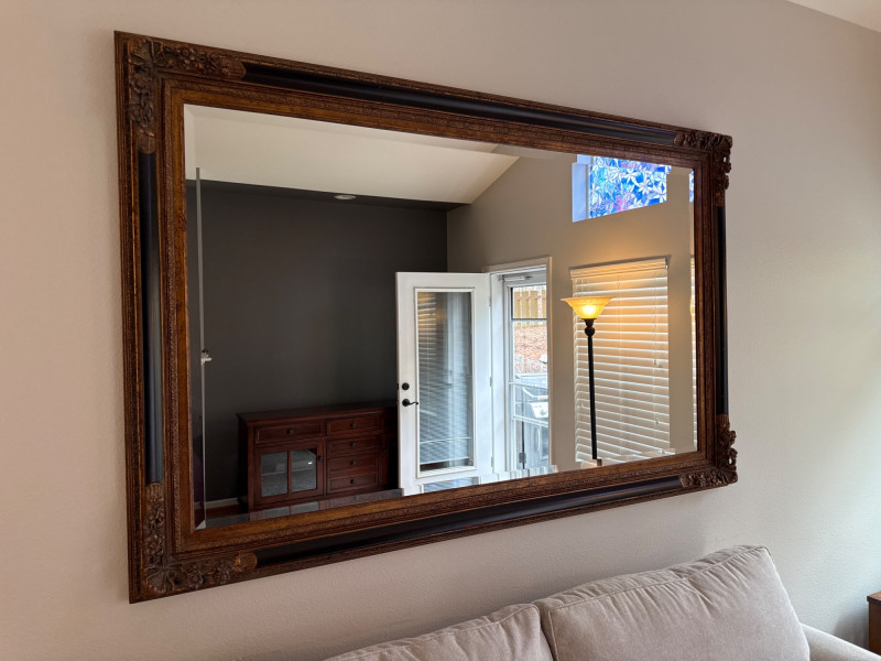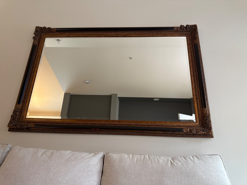 Large Framed Beveled Wall Mirror *please note second to last photo- red marks on frame