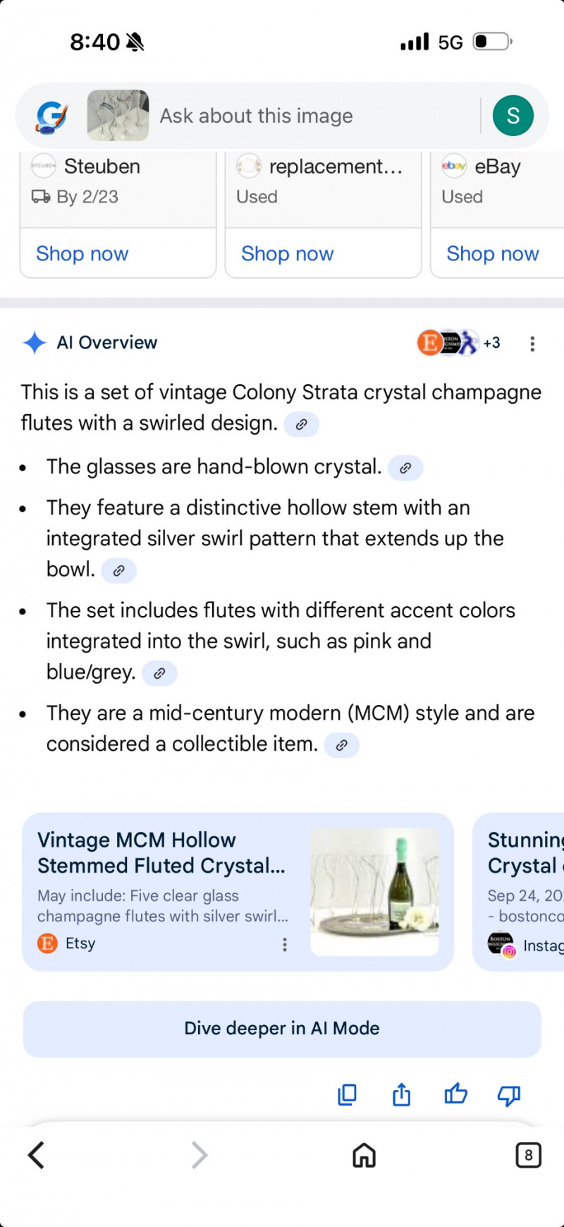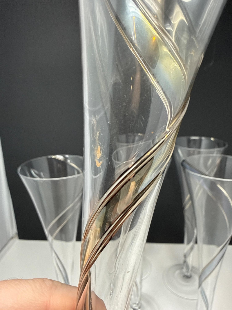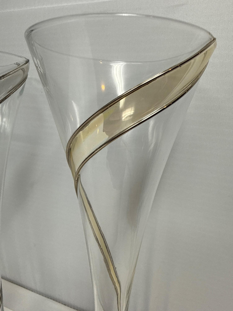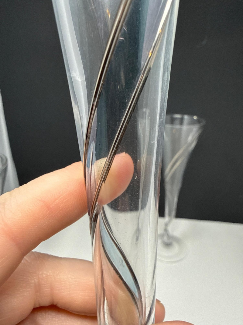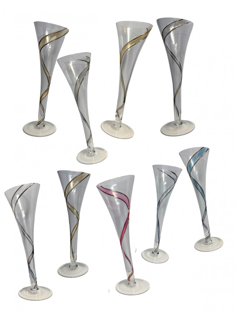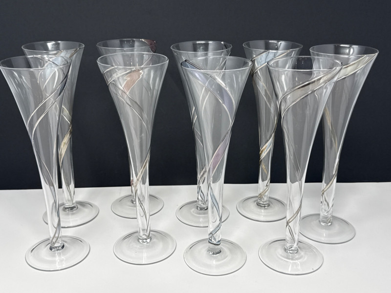Lot # 56 - MCM Colony Strata Crystal w/ Swirled Pattern Champagne Flutes- Set 9