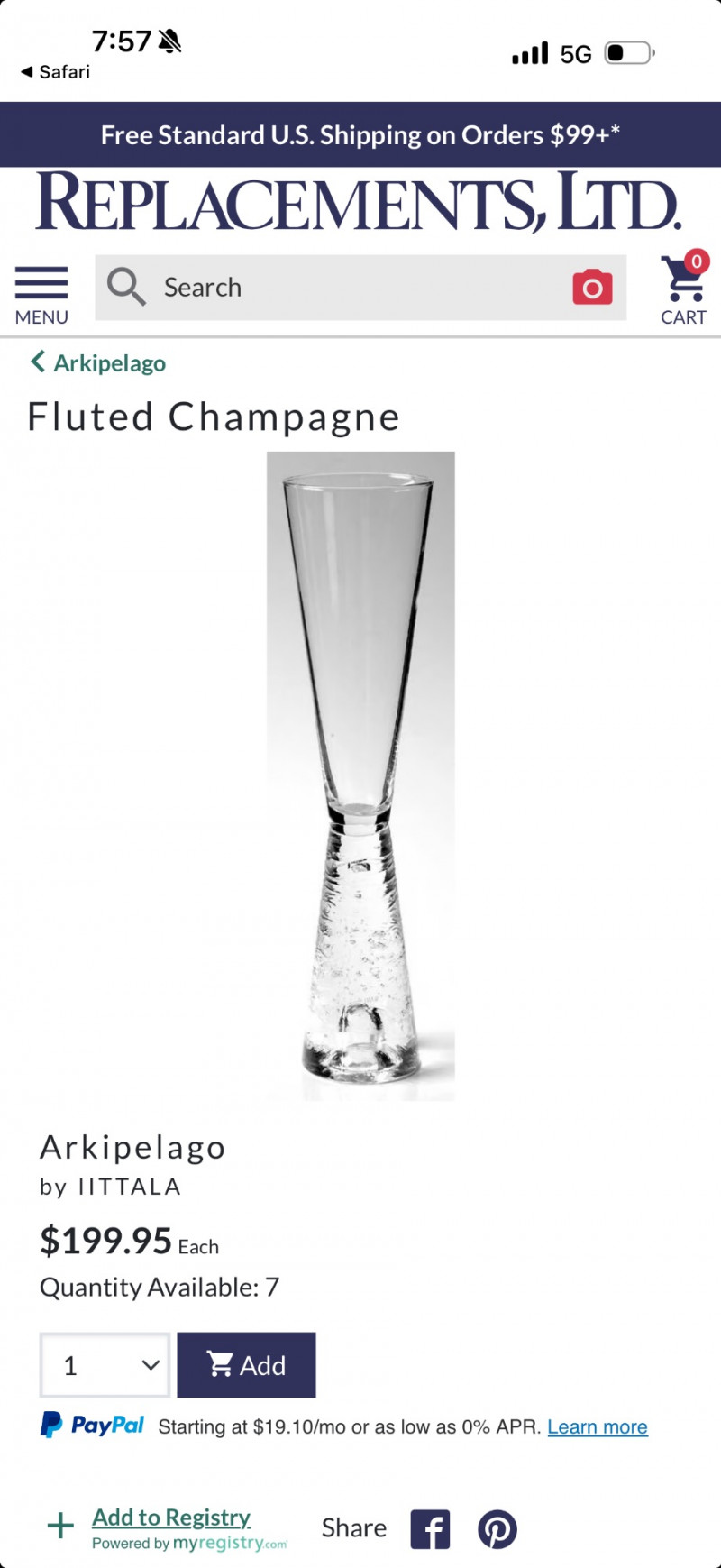 Arkipelago by Ittala Champagne Flutes- Pair Found on Replacements.com for $200 each!