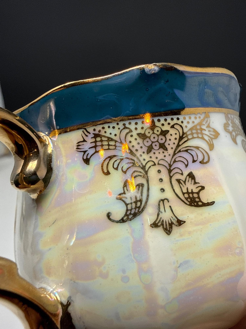 GNA Fine Porcelain Lusterware Creamer, Sugar & Cup Set