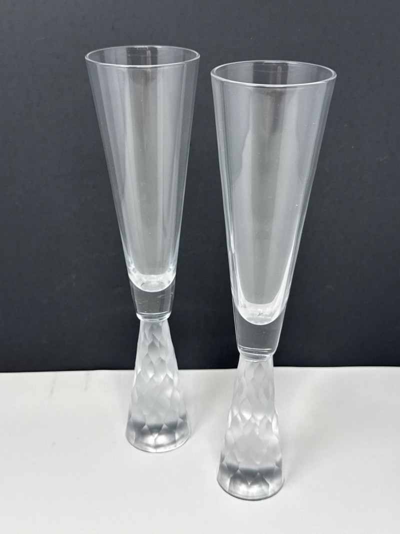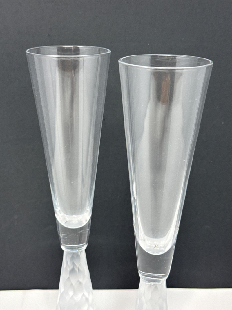 Lot # 72 - Vintage Crystal Champagne Flutes with Frosted Base- Pair