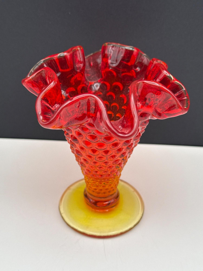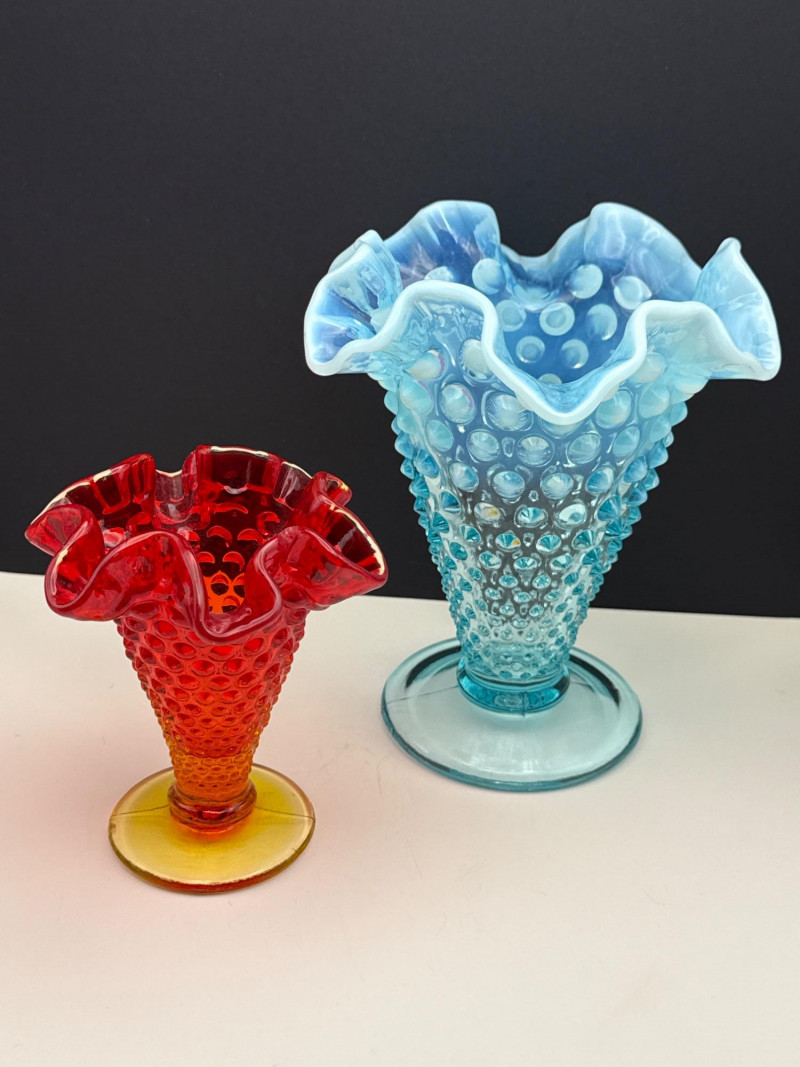 Lot # 73 - Fenton Hobnail Ruffled Edge Vase Duo