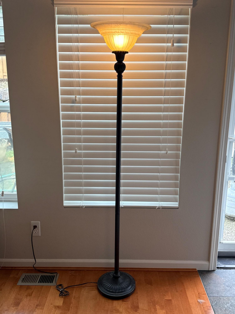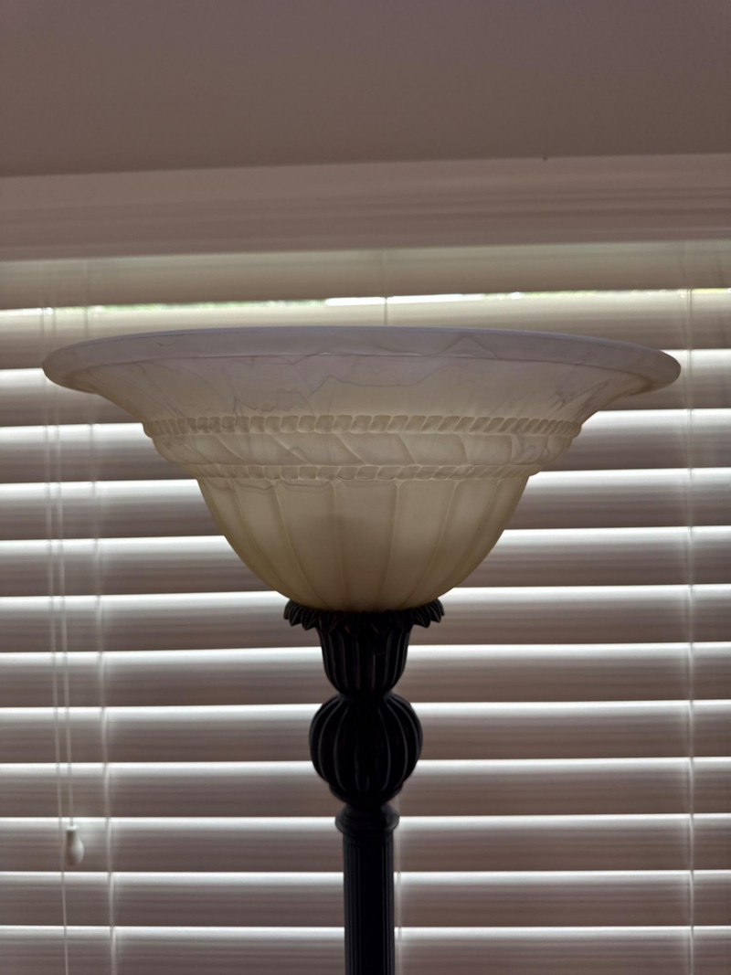 Lot # 75 - Torchiere Floor Lamp with White Marbleized Glass Shade