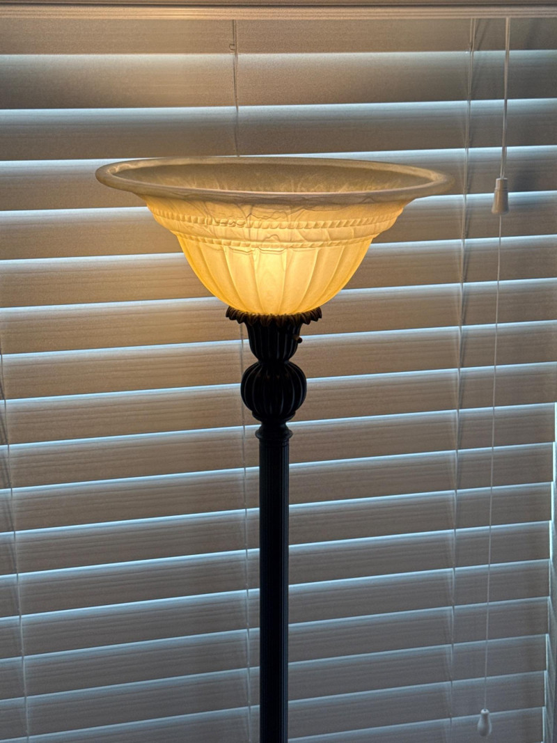Torchiere Floor Lamp with White Marbleized Glass Shade