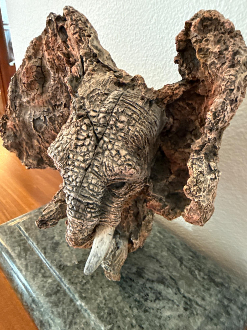 Marka Gallery Elephant Head Sculpture on Granite
