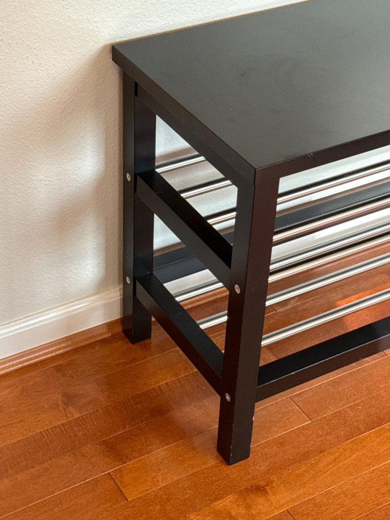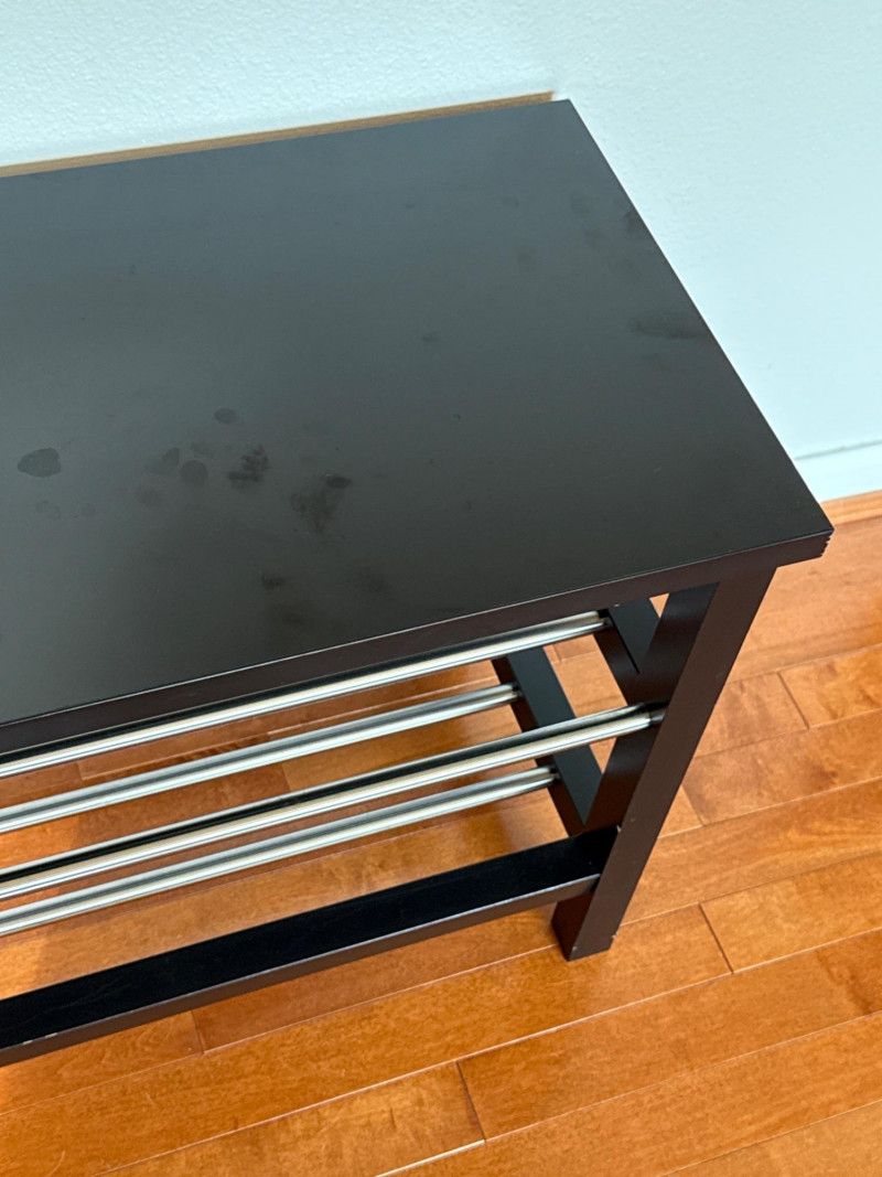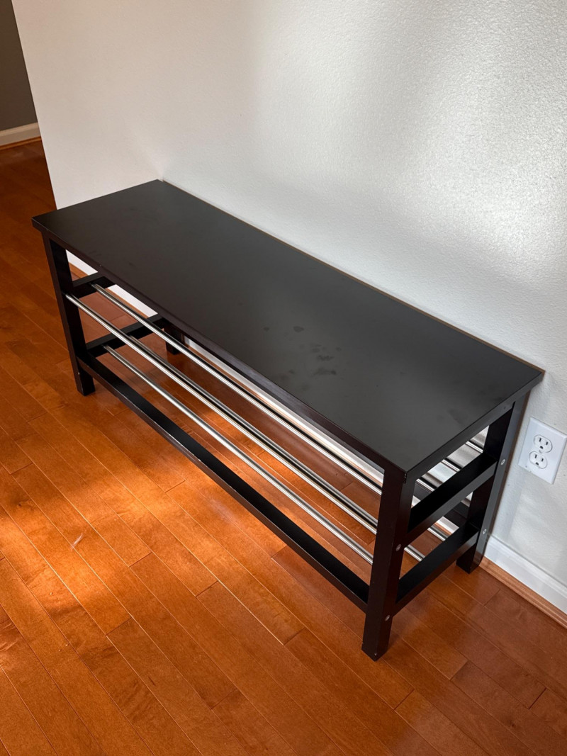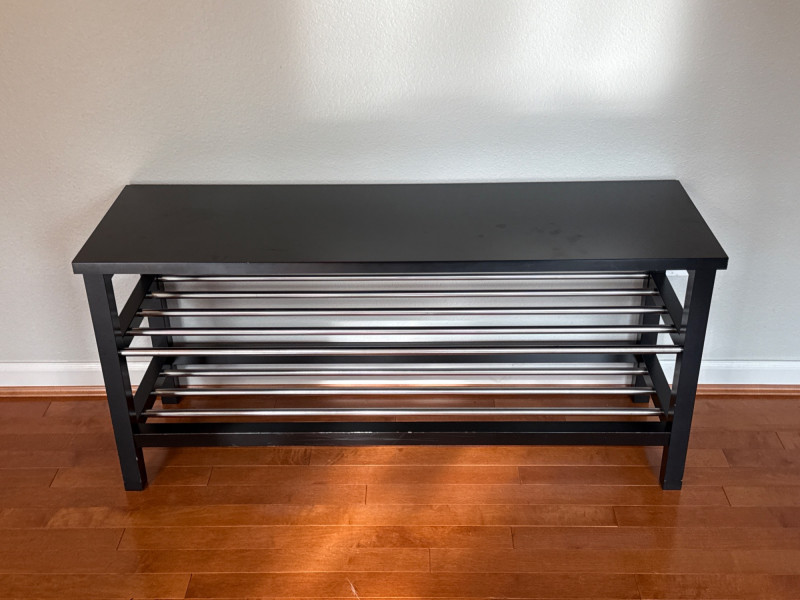 Black Shoe Bench -gently used condition. Please note photos for more details.