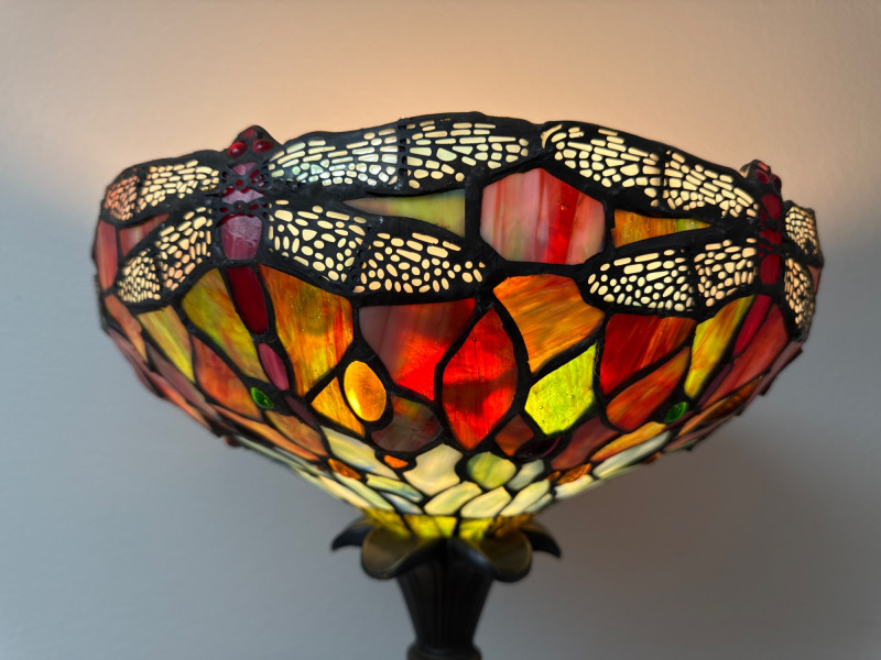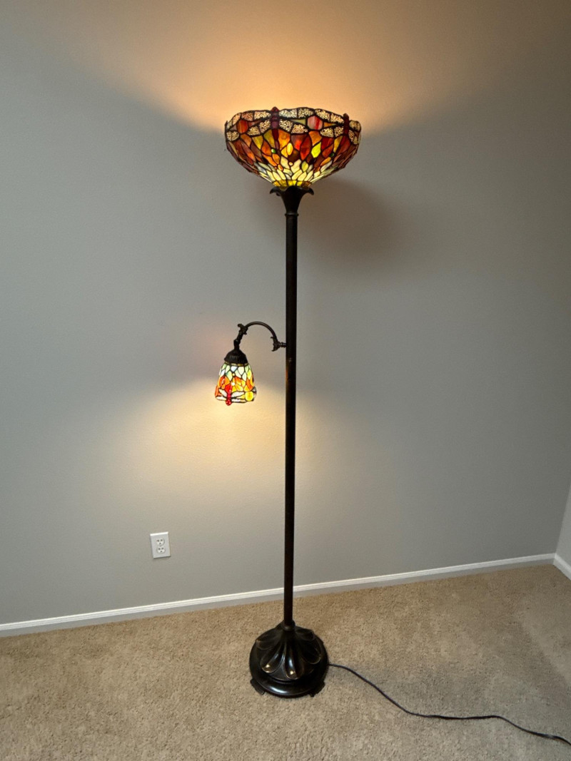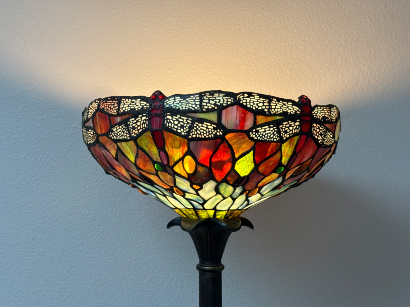 Stained Glass Dragonfly Torchiere Floor Lamp