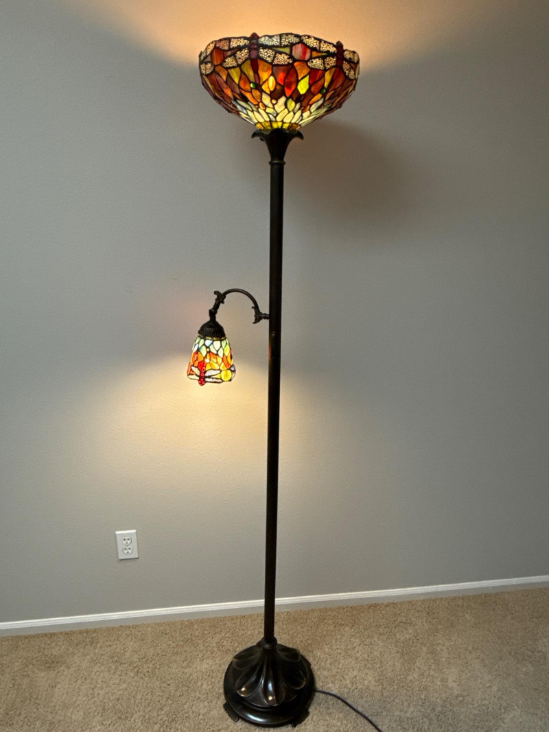 Lot # 97 - Stained Glass Dragonfly Torchiere Floor Lamp