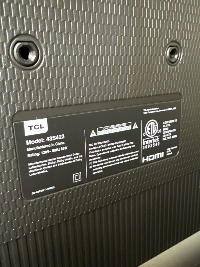 Lot # 101 - ROKU TV #43S423 w/ Remote- 42”