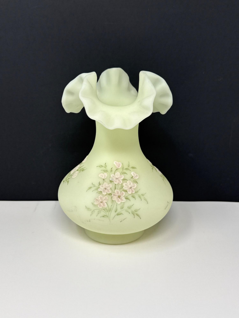 Lot # 104 - Vintage Fenton Hand-Painted Custard Glass Vase by Joan Edwards