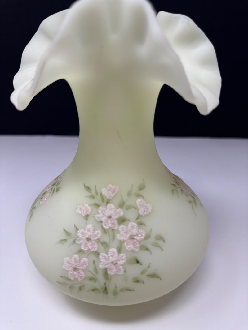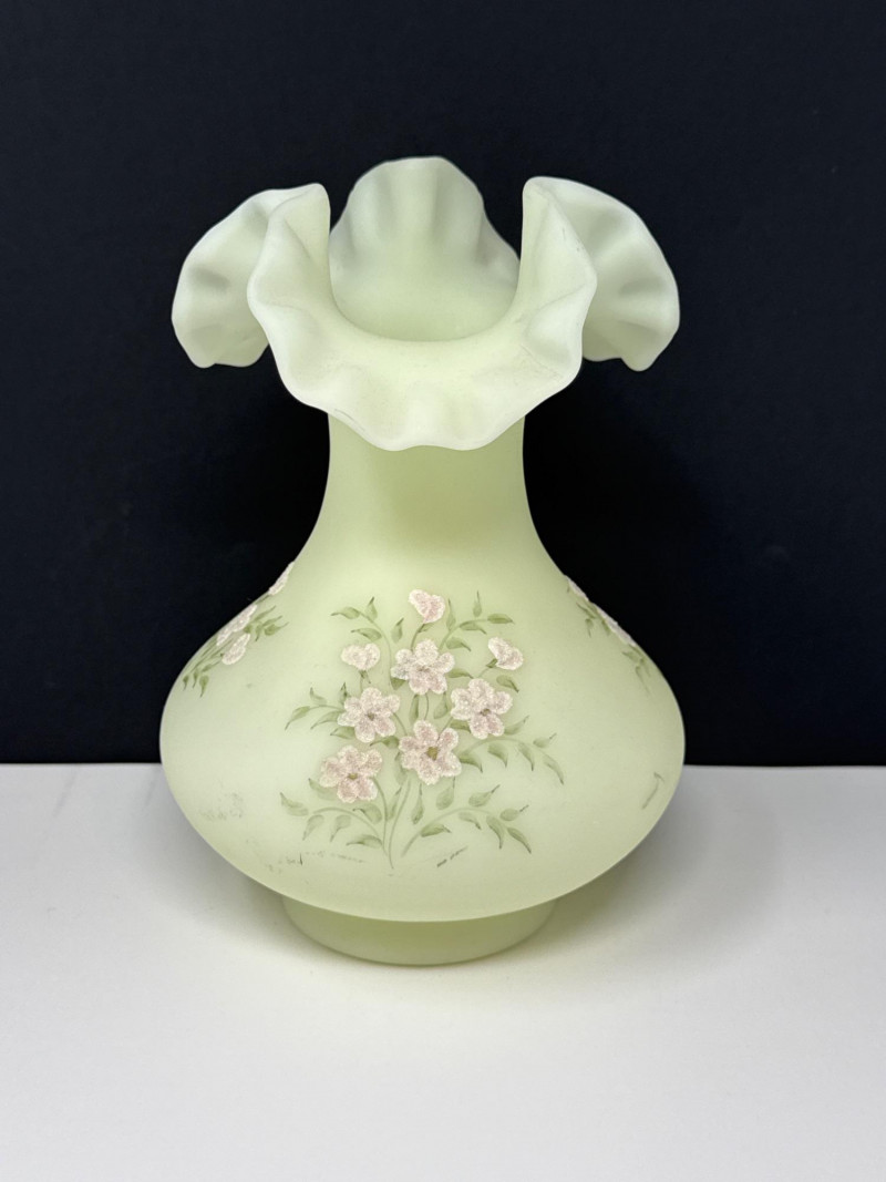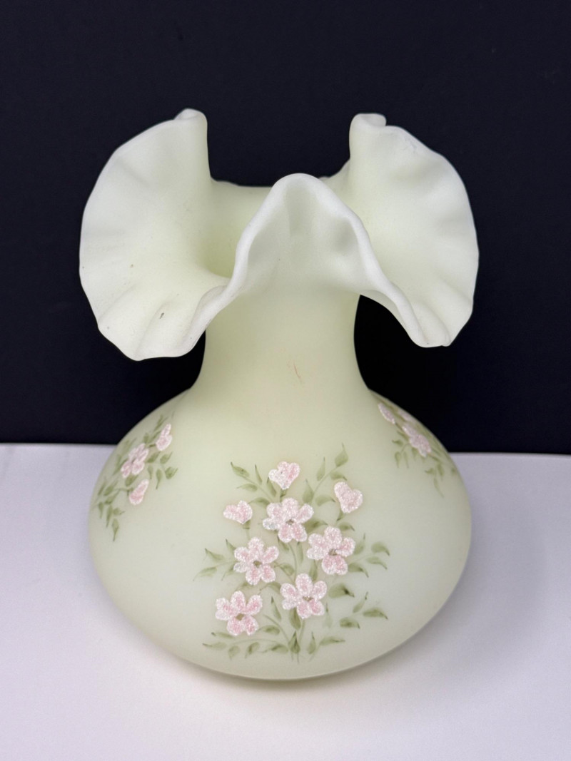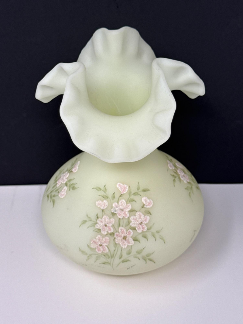 Vintage Fenton Hand-Painted Custard Glass Vase by Joan Edwards