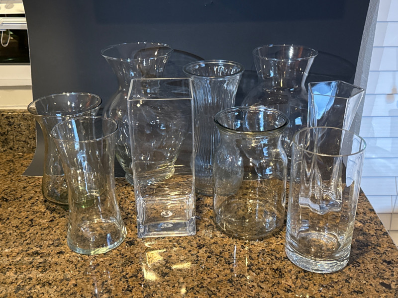 Assorted Glass Vases- 9 pc