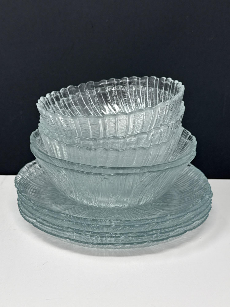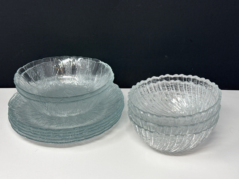 Vintage Swirled Clear Dishes- Bowls & Plates- 10pc