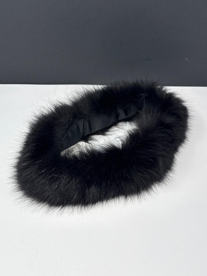 Fox Fur Black Headband Approximately 10” across Velcro’ed shut