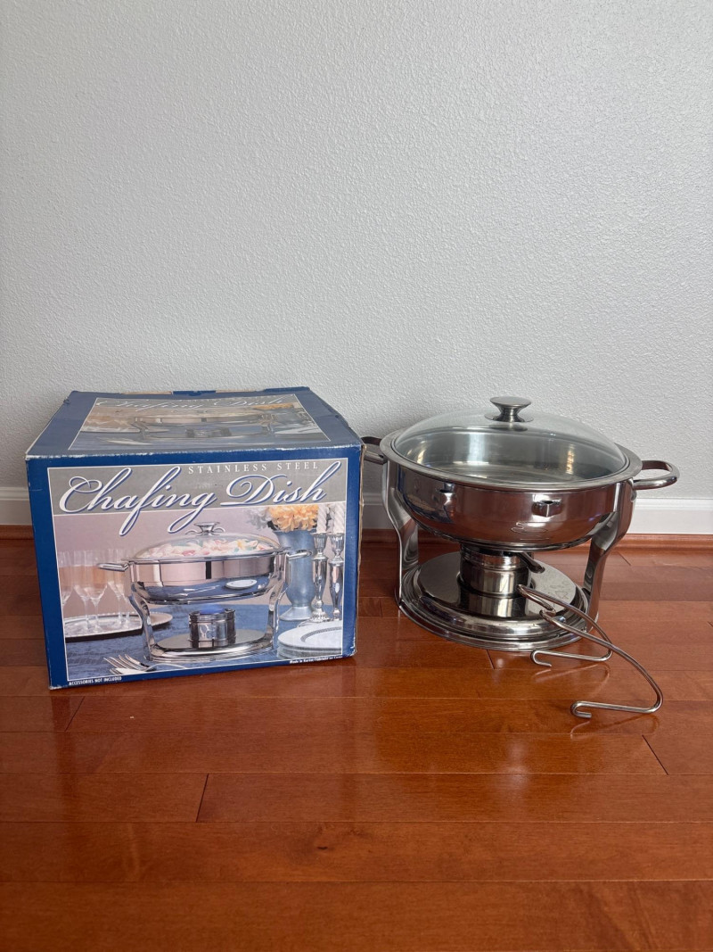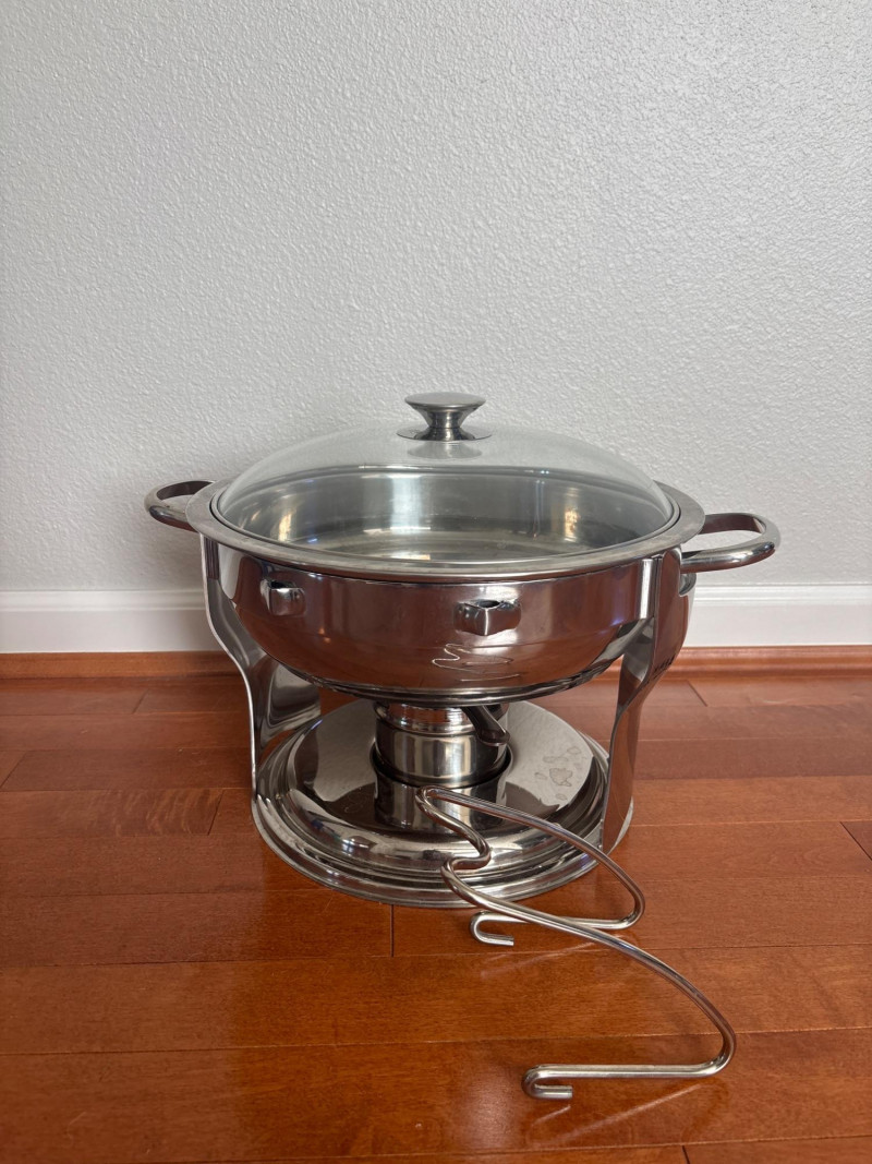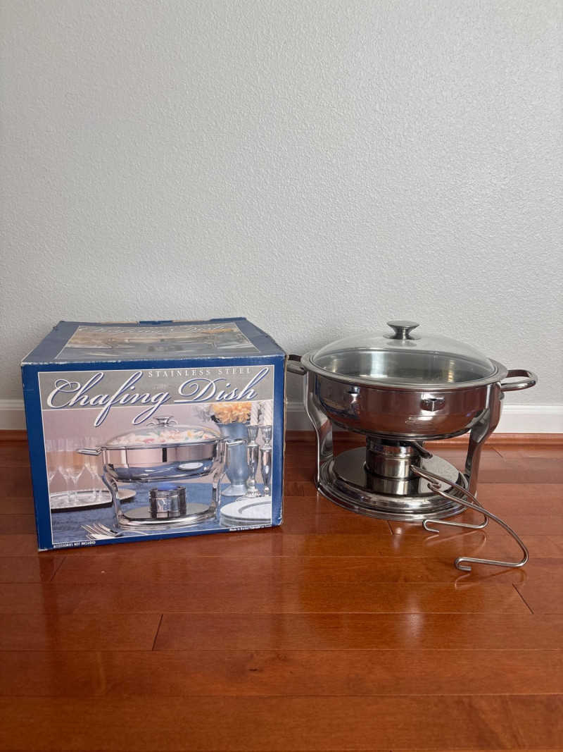 Pair Round Chafing Stainless Steel Dishes