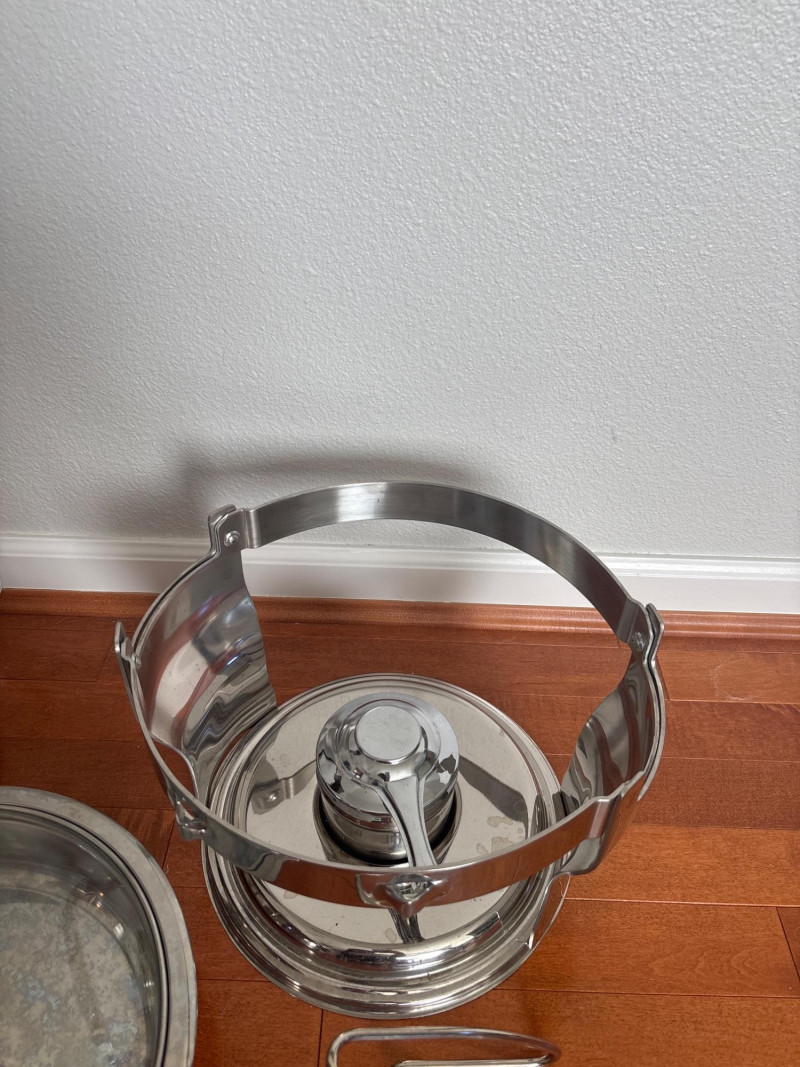 Lot # 137 - Pair Round Chafing Stainless Steel Dishes