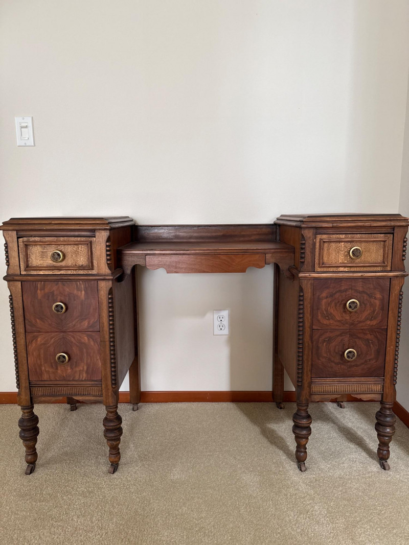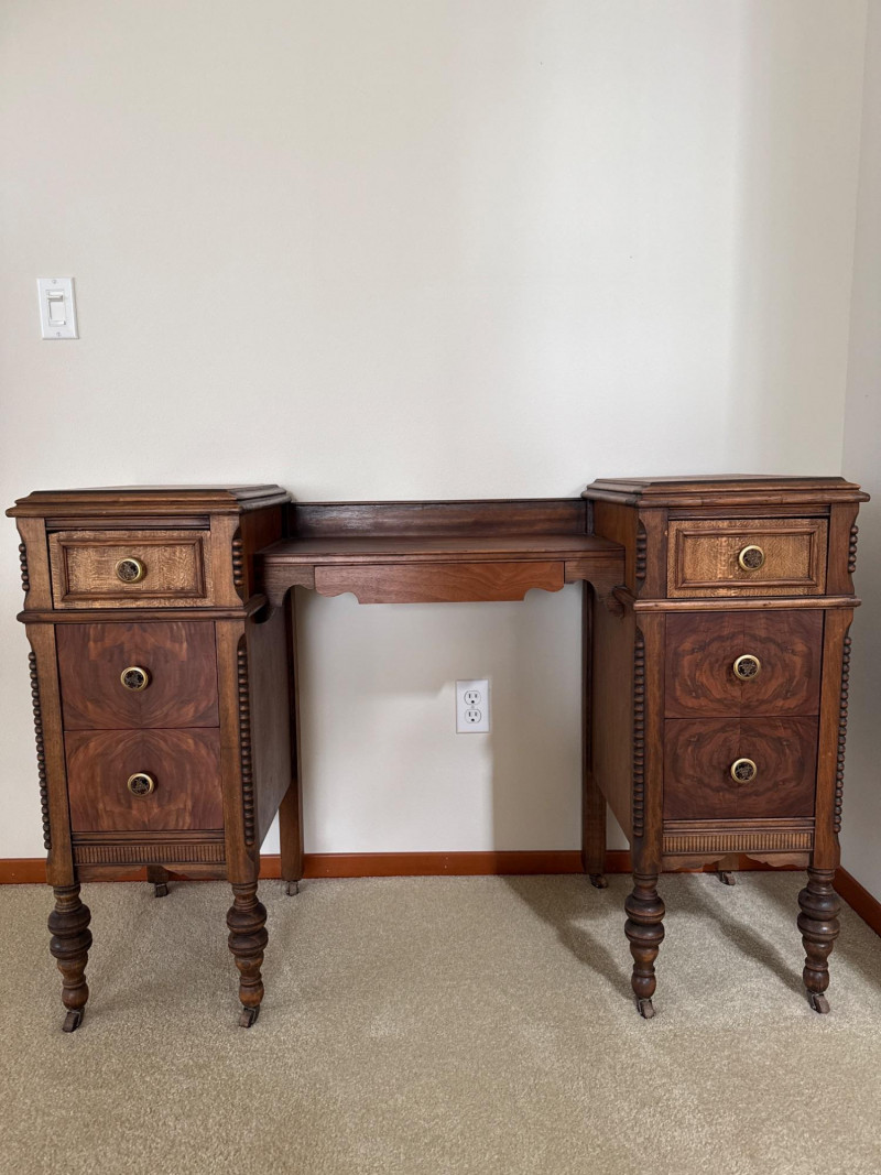 Lot # 3 - Solid Wood Vintage Kneehole Desk or Vanity