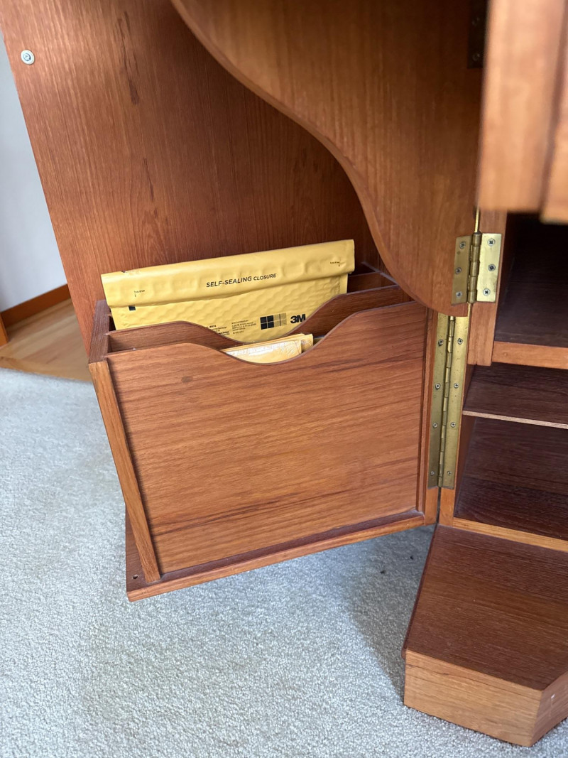 Lot # 41 - Mid Century Teak Magic Box Desk- Closes Compact
