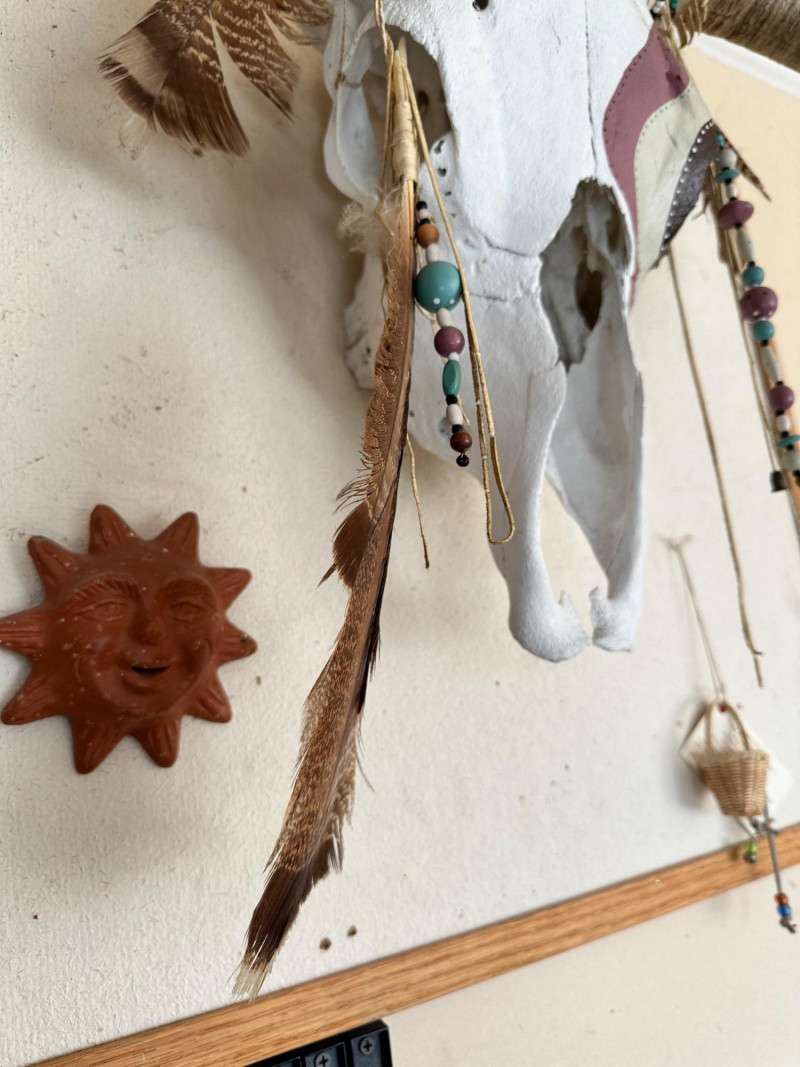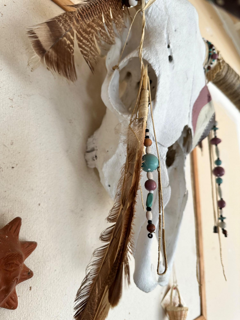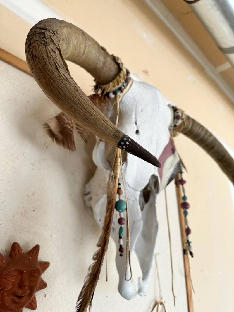 Lot # 50 - Decorative Painted Bull Skull with Beads and Feathers