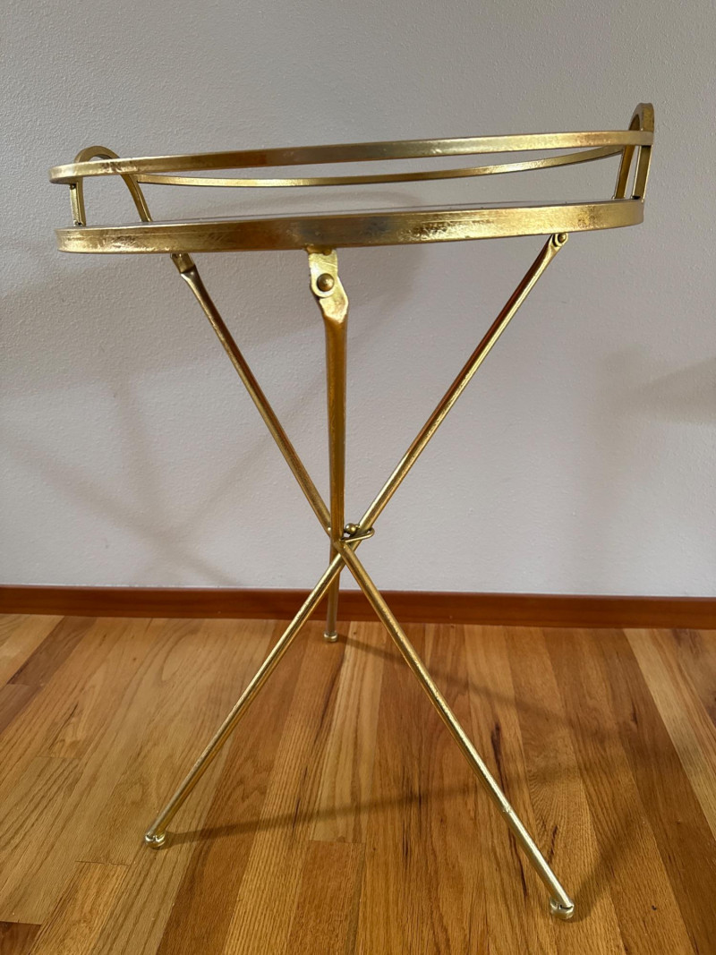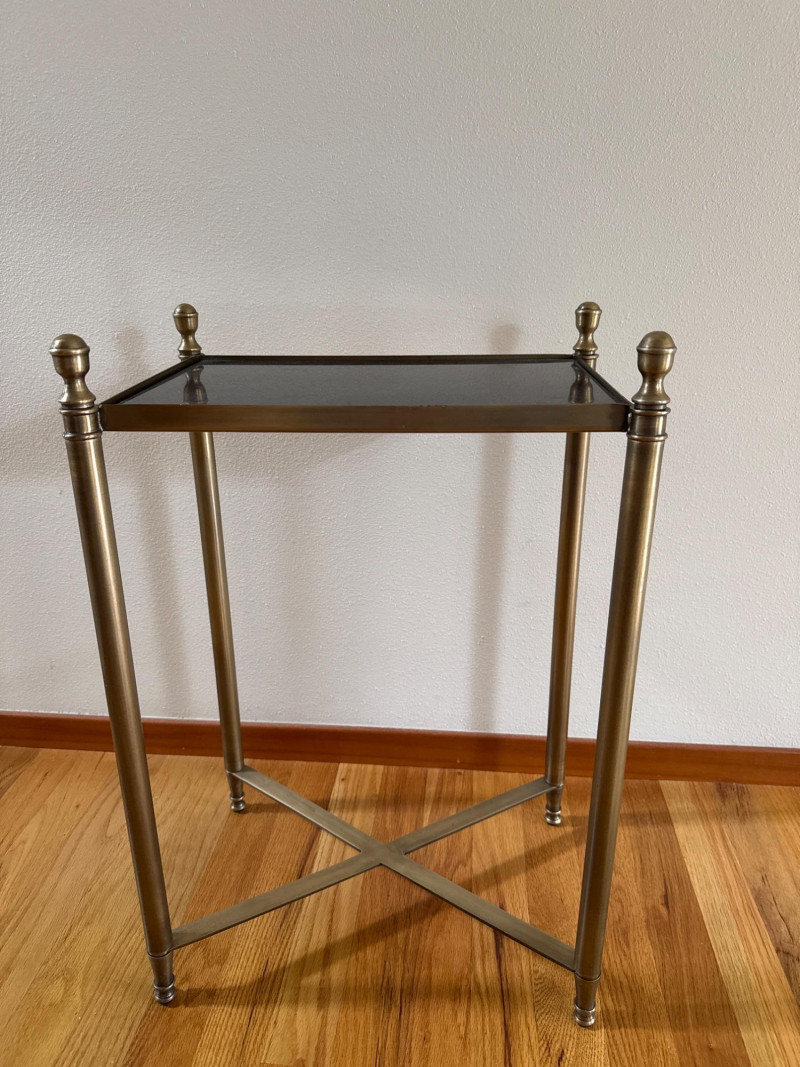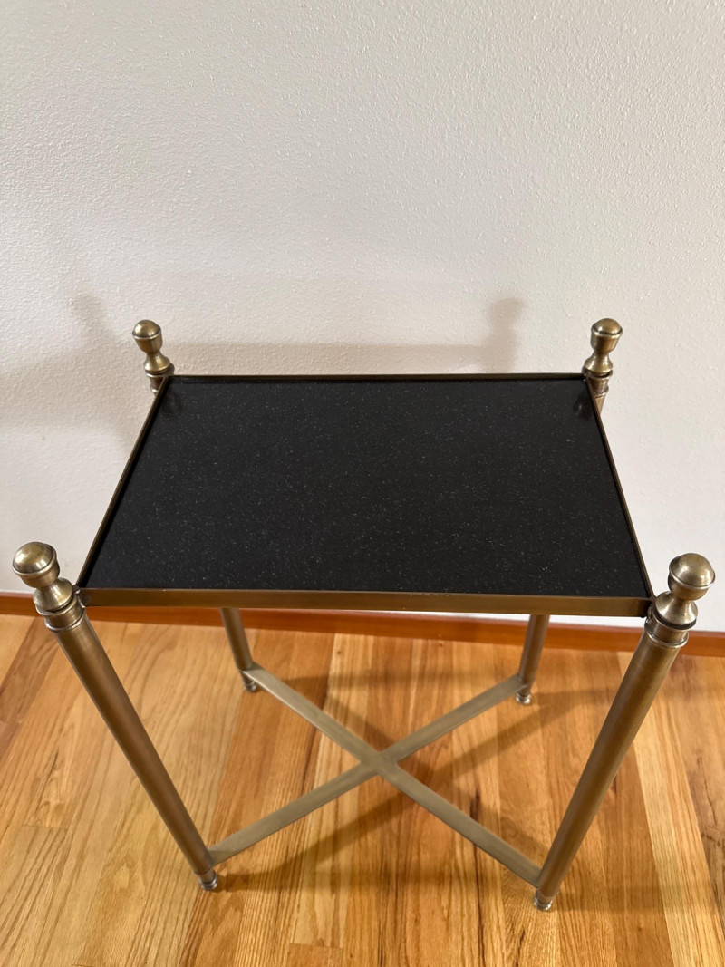 Approx. Size: 18" diameter × 25" tall A vintage accent table with bronze legs and a solid granite top, giving it a substantial, high‑quality feel. The bronze frame has clean, straight lines with lower crossbars for stability, blending vintage craftsmanship with timeless style.