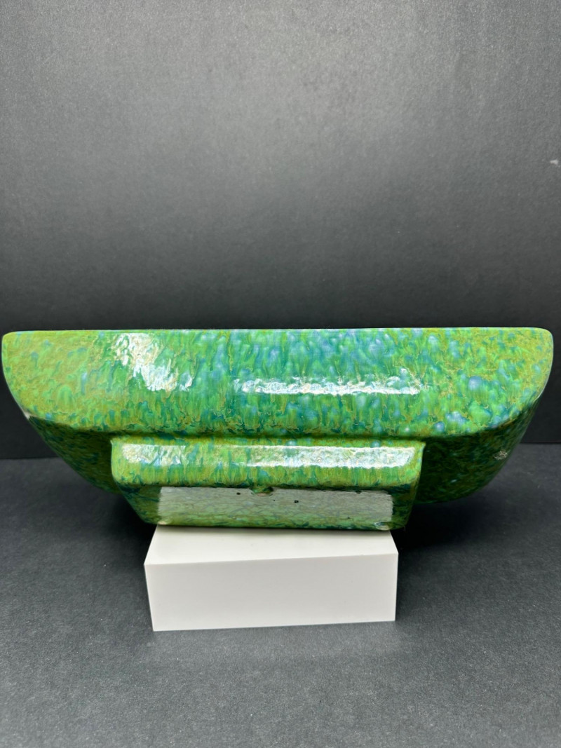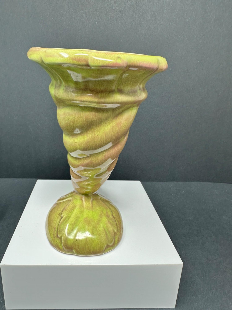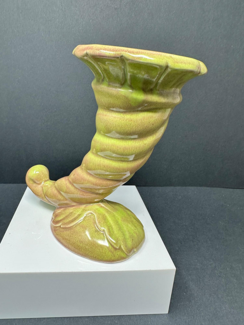 Lot # 80 - Vintage Green Planter and Cornucopia Vase, Two Flower Frogs