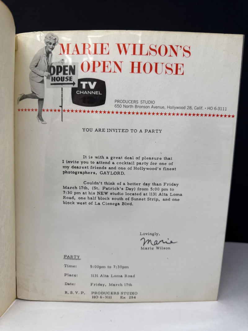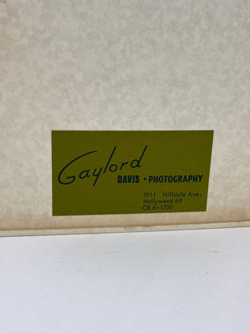 A rare and intriguing personal memento photo album featuring original prints by Gaylord Davis, a professional Hollywood photographer active during the 1960s. This collection serves as a captivating time capsule, offering an insider's perspective on mid-century film culture and California life. Album Highlights: Photographer: Gaylord Davis (Features the authentic "Gaylord" studio label). Era: 1960s. Content: Beyond the professional portraits, the album contains an eclectic array of candid snapshots and atmospheric life studies. These images provide a wonderful glimpse into the behind-the-scenes world of 1960s Hollywood. Curation: A diverse assembly of original prints, ranging from formal compositions to spontaneous, evocative moments captured on film. Condition Report:
