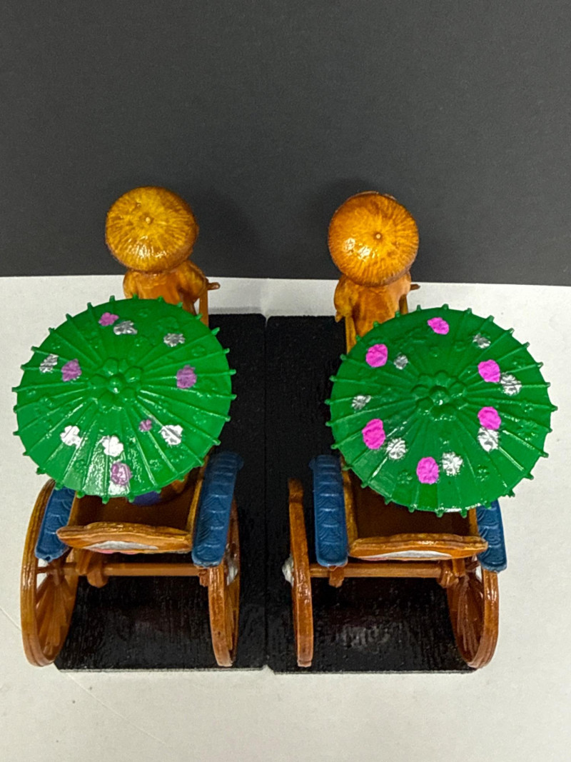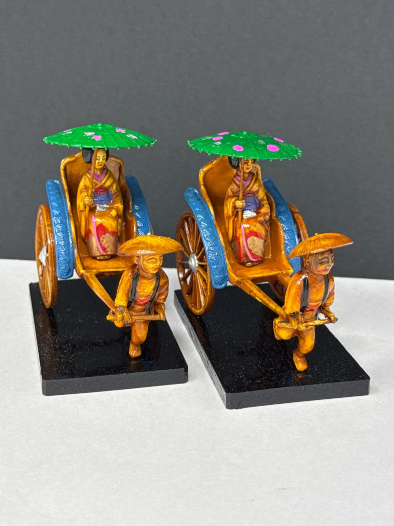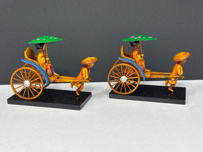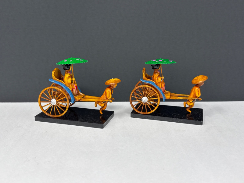 Lot # 29 - Pair of Handcrafted Vintage Chinese Rickshaw Figurines