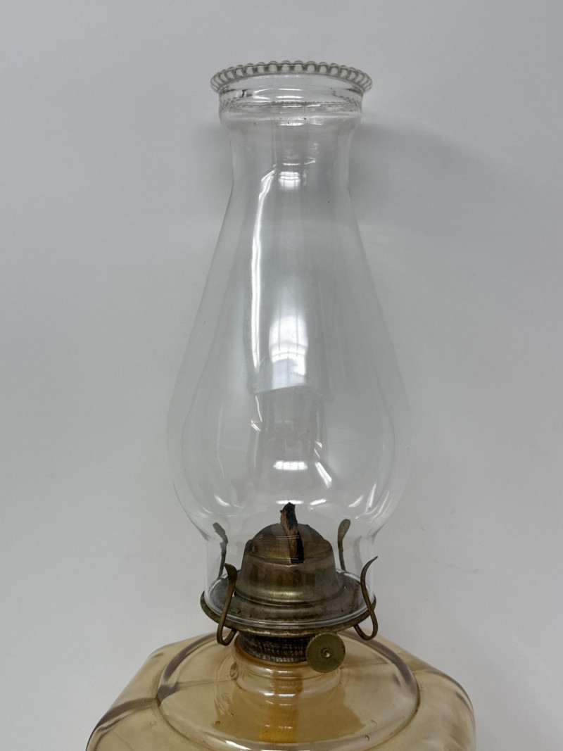 Lot # 31 - Antique Amber Luster Glass & Brass Oil Lamp