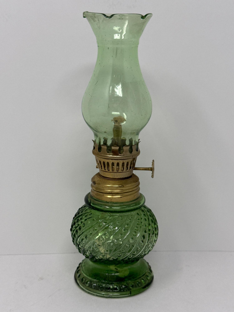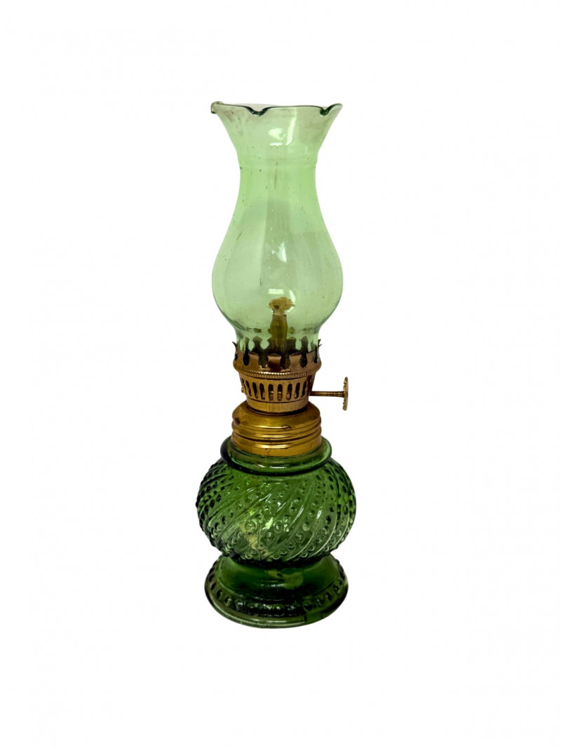 Lamps of this size were traditionally used as bedside lighting before electricity. Today, they are highly sought after by collectors of Depression-era style glass and those looking for functional emergency lighting with a vintage aesthetic. Good Vintage Condition