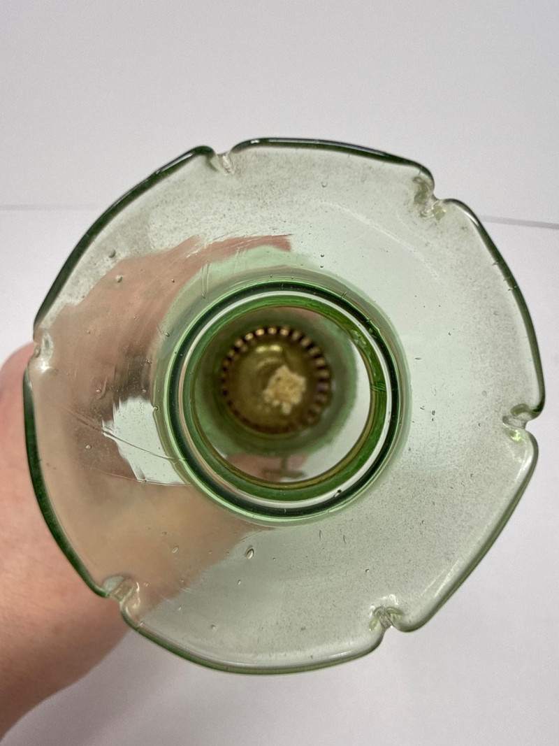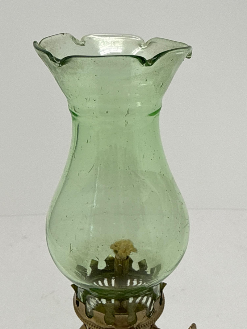 Lot # 37 - Vintage Emerald Green Glass Oil Lamp - Diamond Point Pattern 8"
