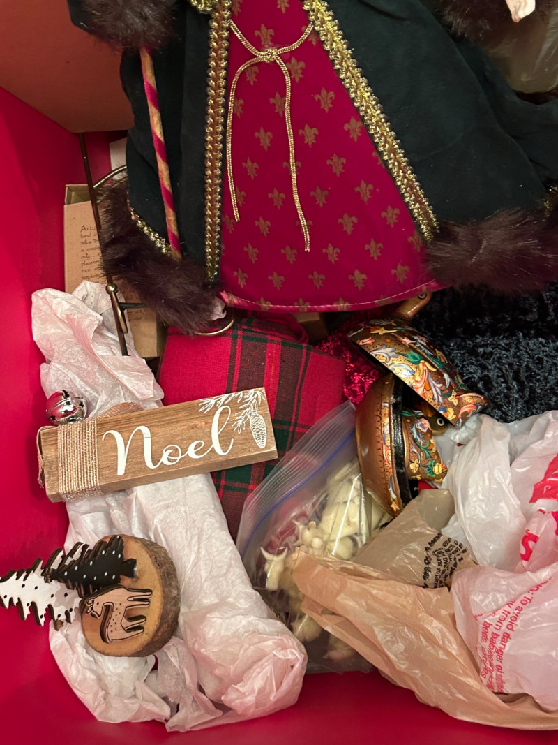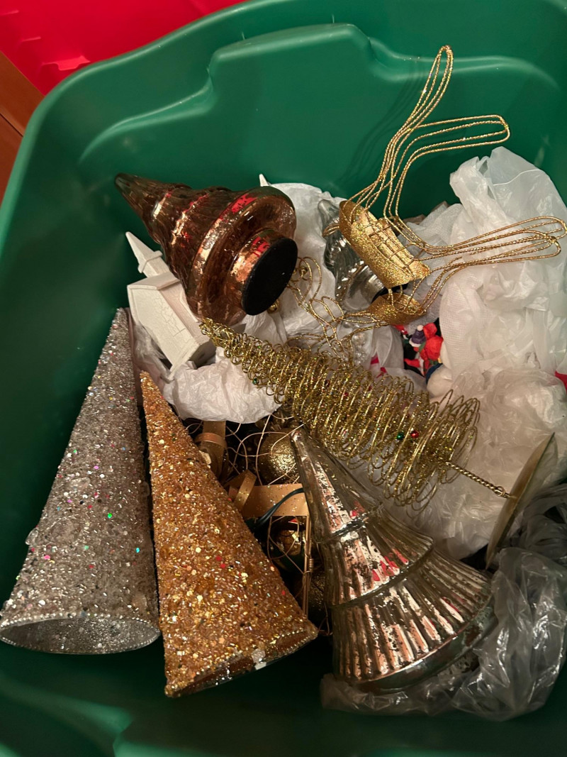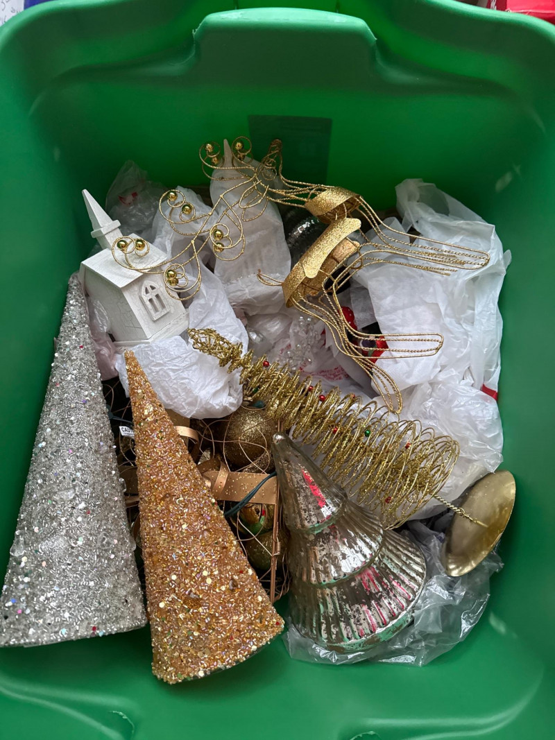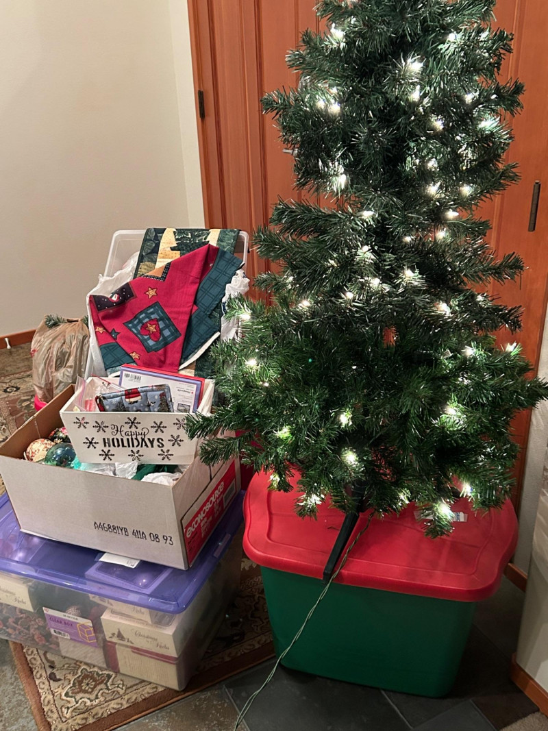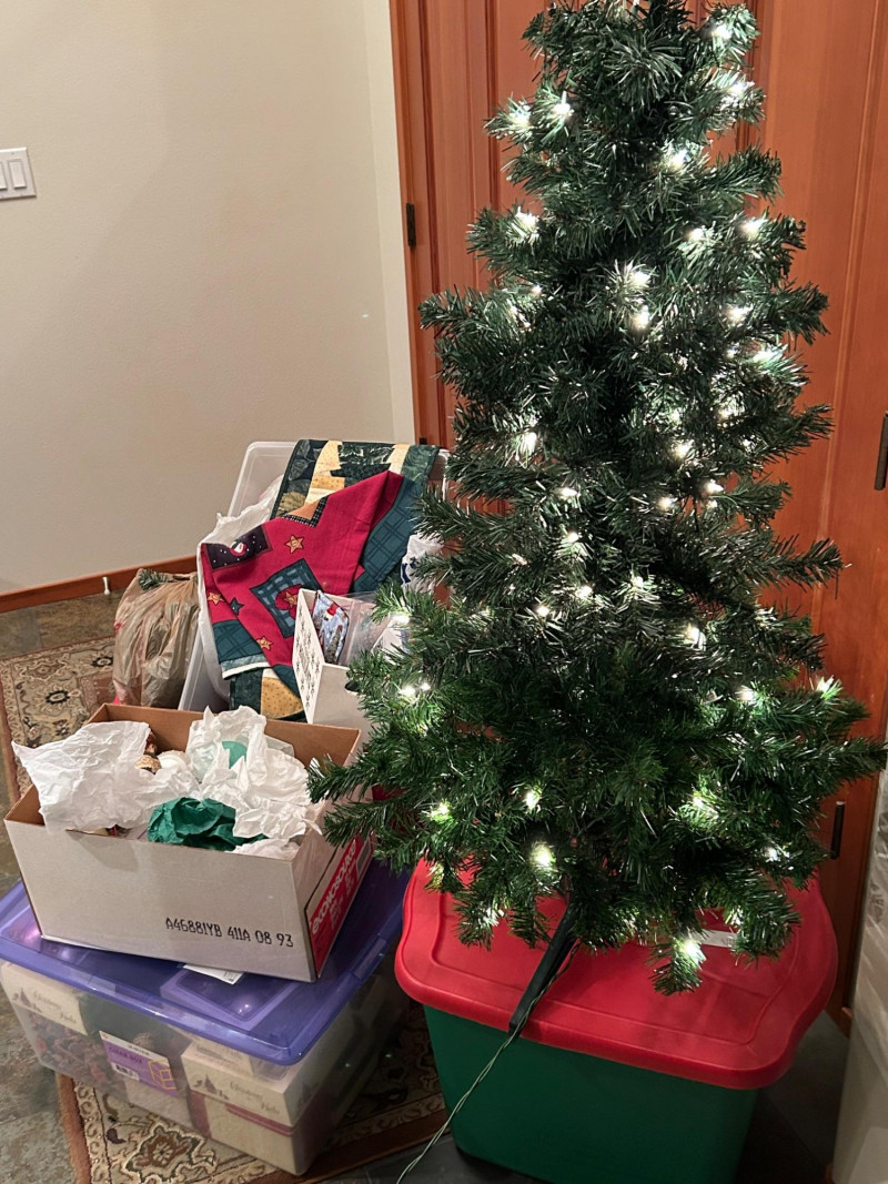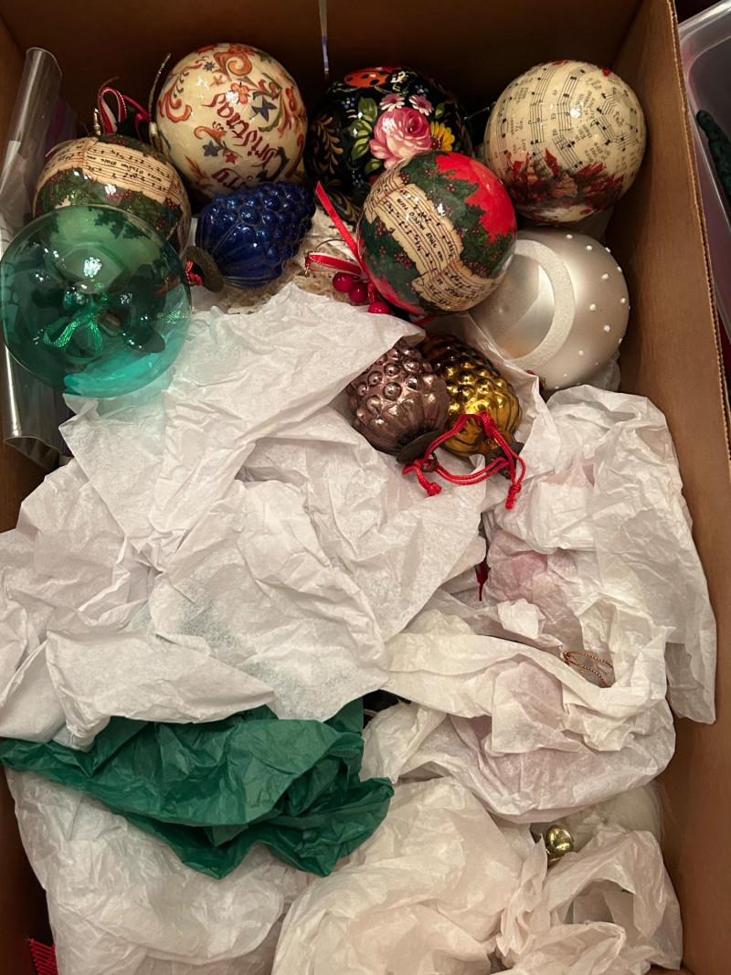 Loads of ornaments, Christmas Decor, including Jim Shore figures, Pillows and so much more. Vintage and newer items in this lot. Lots of value. 52” pre-lit tree