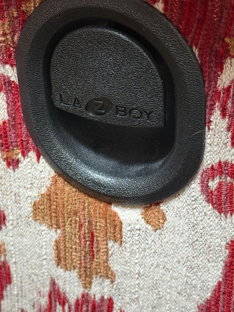 Lot # 21 - La‑Z‑Boy Patterned Reclining Loveseat with Pillows