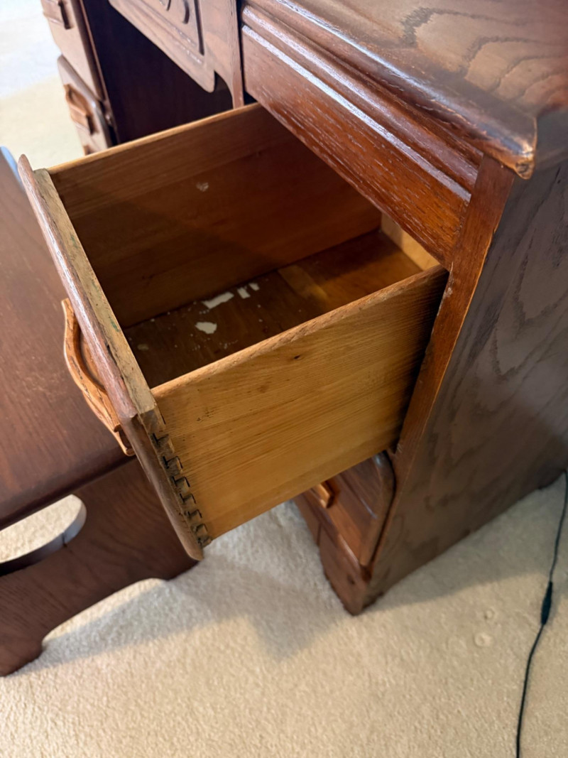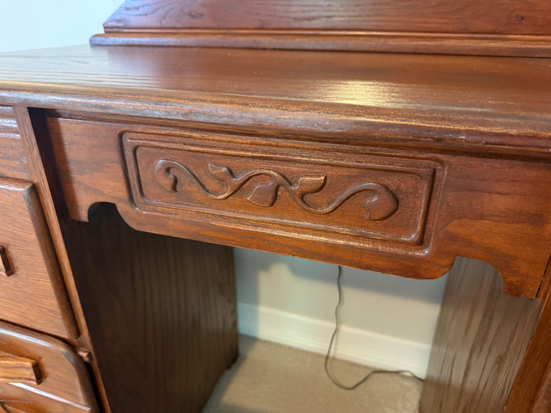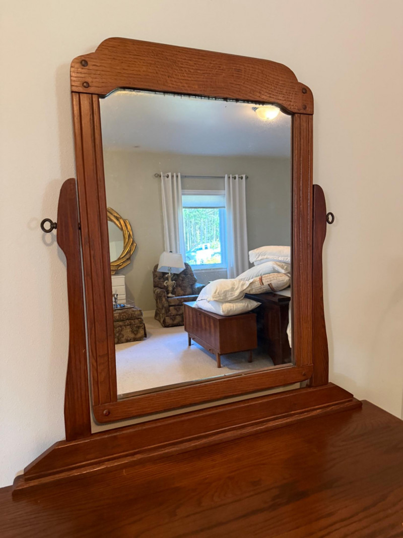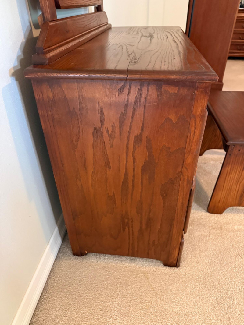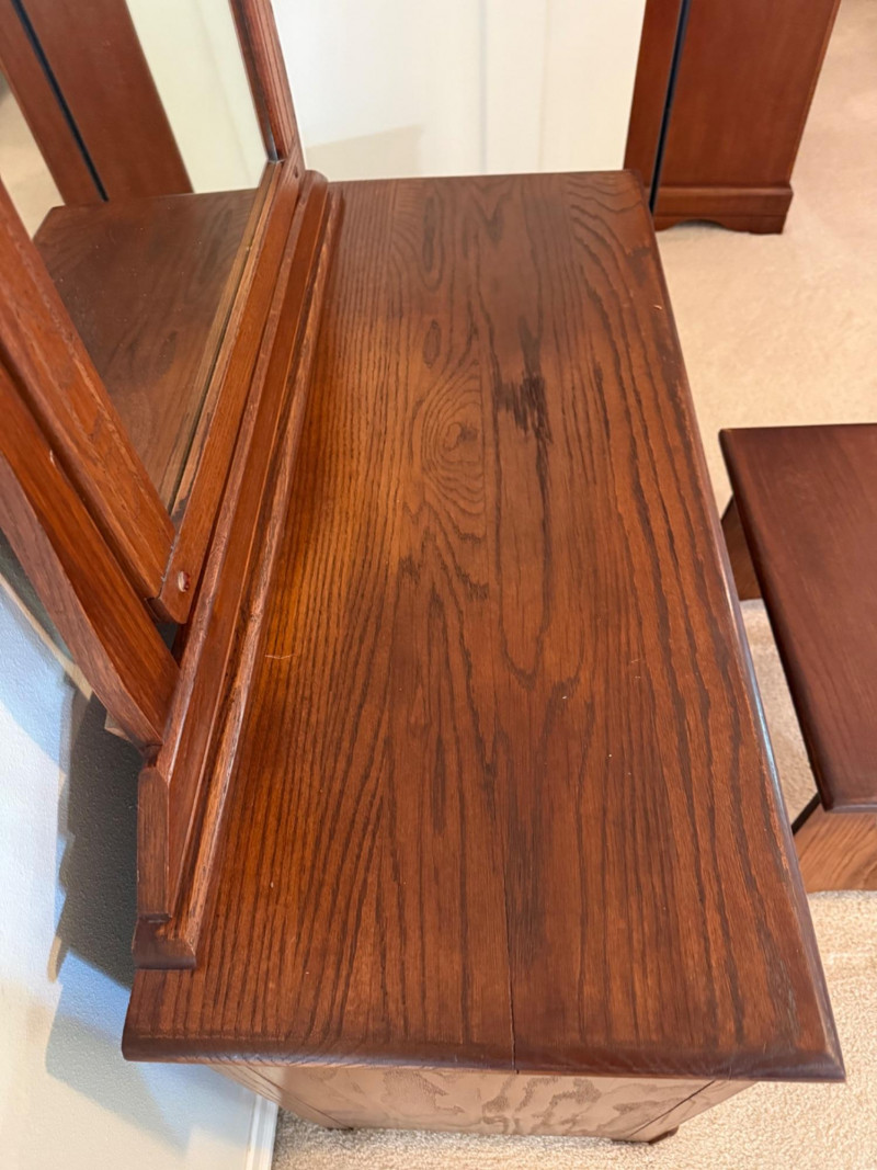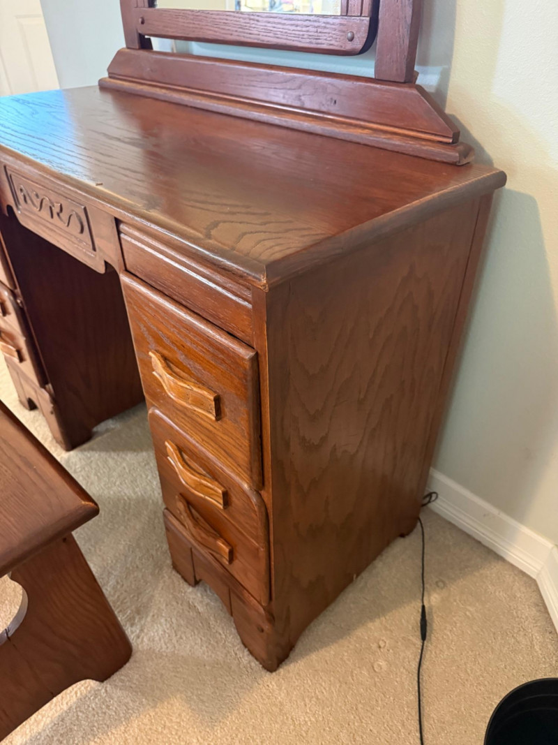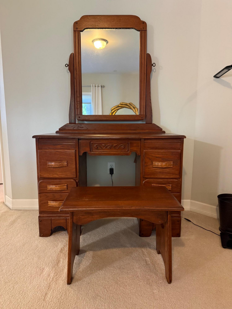 Lot # 33 - Vintage Oak Vanity With Matching Bench