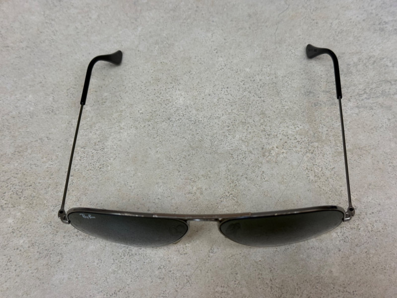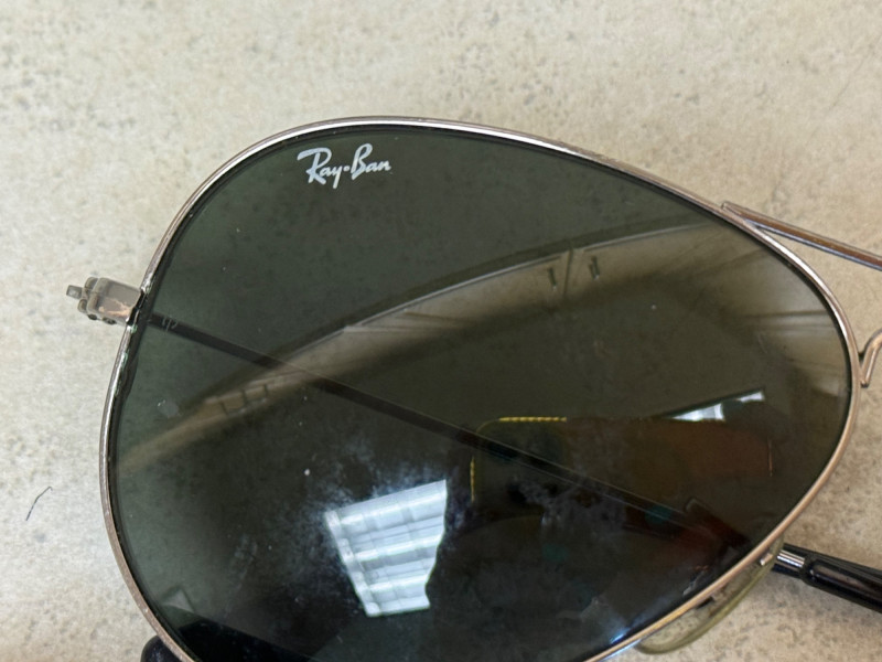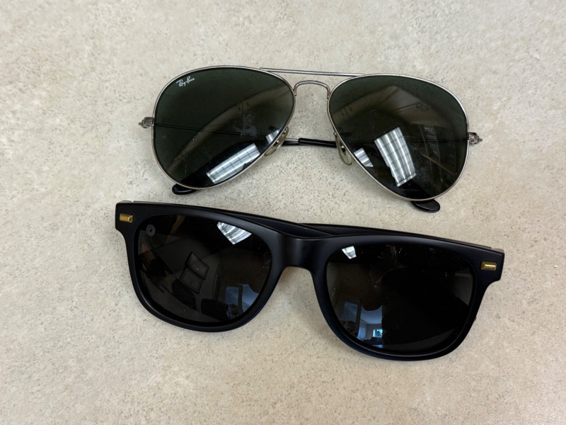 Pair of men’s/women’s sunglasses including one Ray‑Ban Aviator style and one knockaround style.