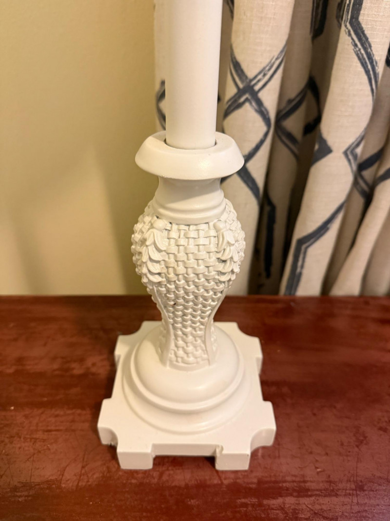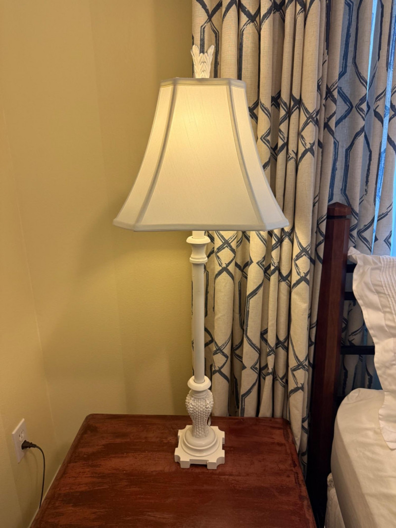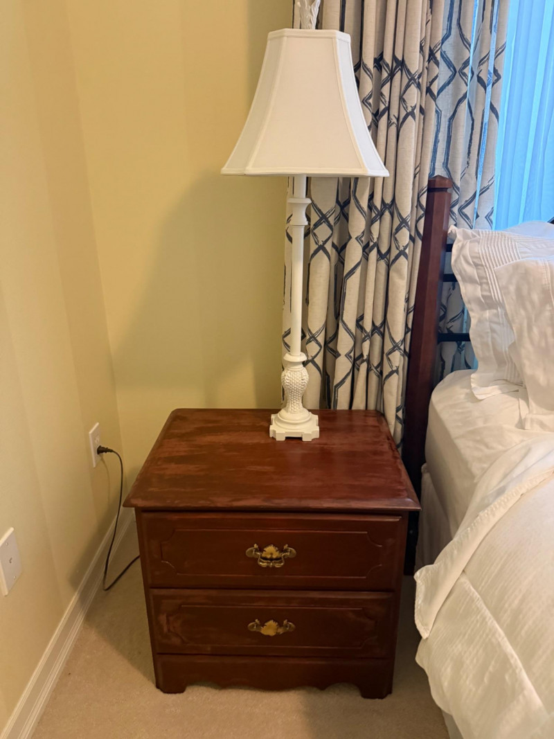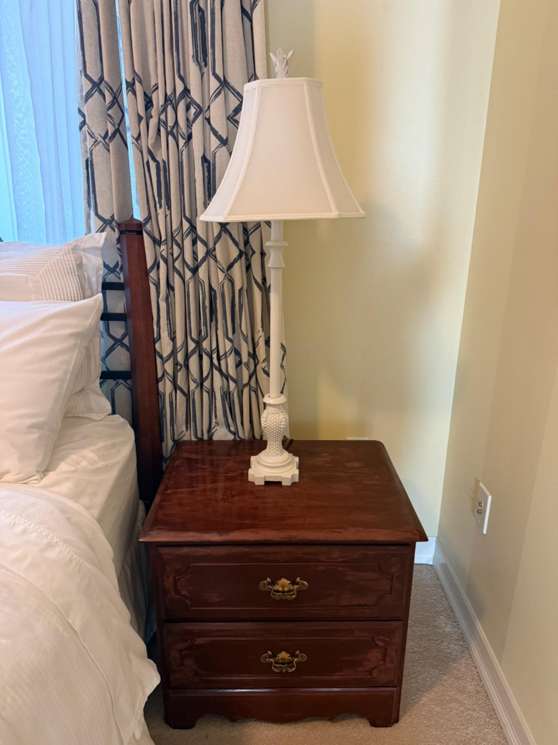 Lamps measure 37 inches tall 13 inches wide. Nightstands are 21 inches tall by 23 1/2 inches wide by 17 1/2 inches deep.