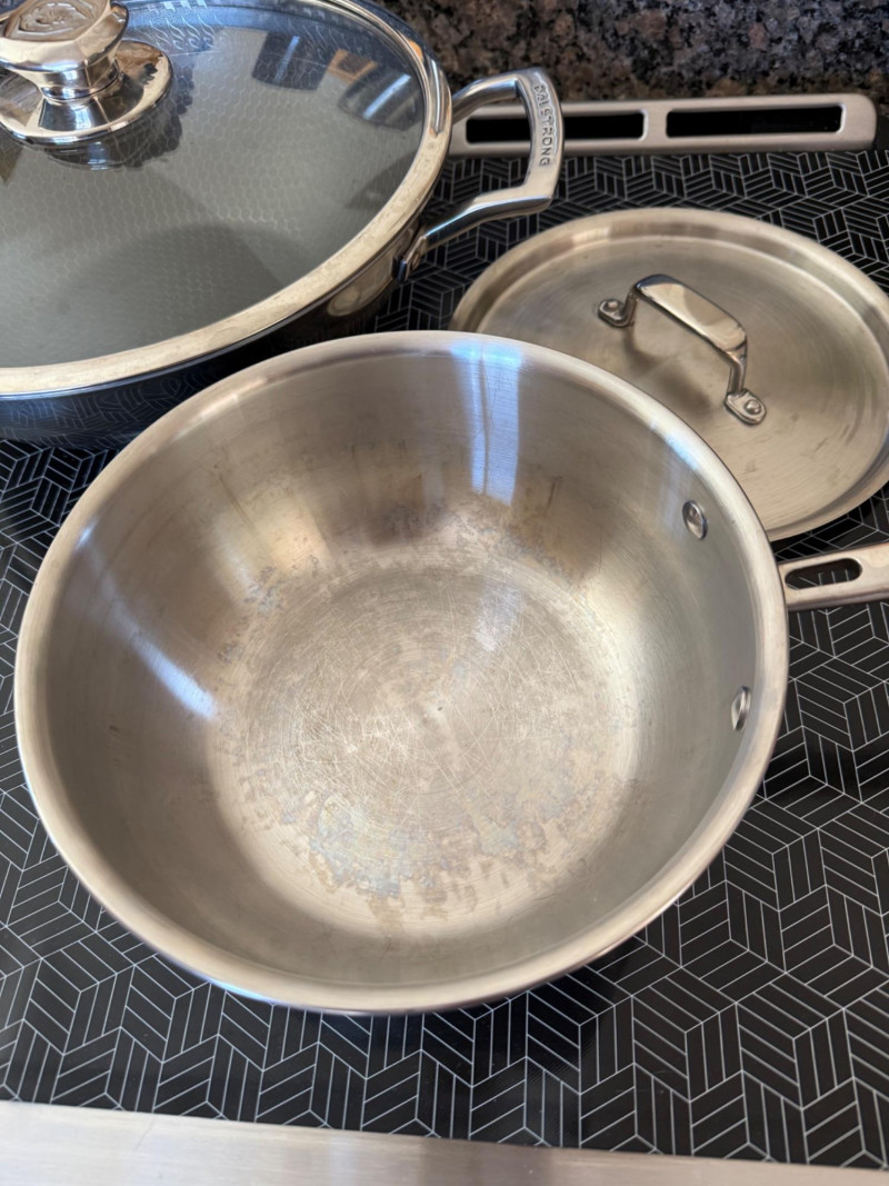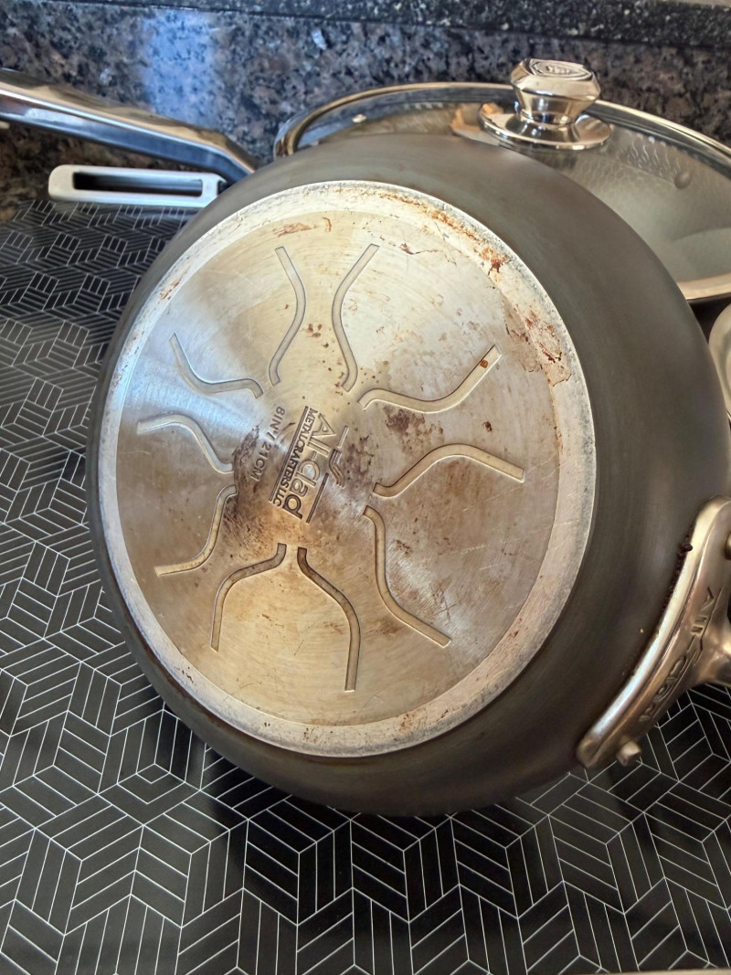 Black nonstick interior Lightweight, easy‑clean surface Ideal for eggs, sautéing, and quick cooking Standard everyday skillet Stainless steel body with wide cooking surface Glass lid for monitoring food Side handle plus long handle for control Good for browning, simmering, and one‑pan meals Classic stainless steel construction Metal lid with handle Suitable for boiling, reheating, and sauces Durable, versatile kitchen stapleAll-Clad Frying Pan